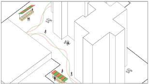 This open green area has the potential to be a vital point in the South. Transforming a green area from a purely decorative space into one with a distinct identity can provide greater benefits.