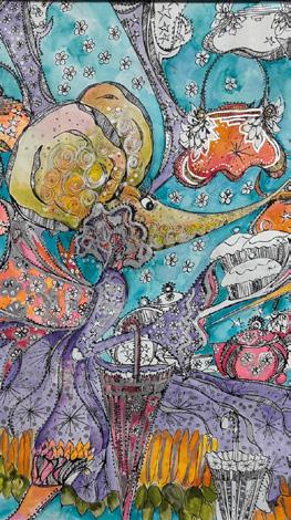 Local landscapes are translated into intricately woven images using coloured yarns to add depth, texture and atmosphere. Paintings are usually flowers drawn in ink with subtle watercolour washes.