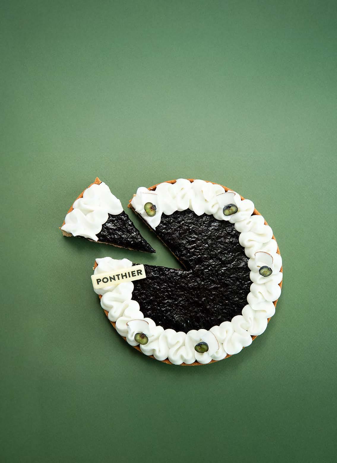 Na tarte vegetal de mirtilo e côco, o puré de mirtilo define cor, intensidade e leitura imediata do sabor. O coco suaviza, mas não dilui. O resultado é claro, sem excesso aromático.