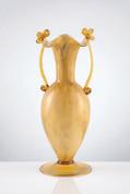 Corpo piriforme a motivi vegetali, base rotonda, manico a riccioli, cm. 28 h., peso g 400.