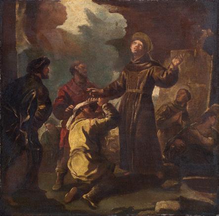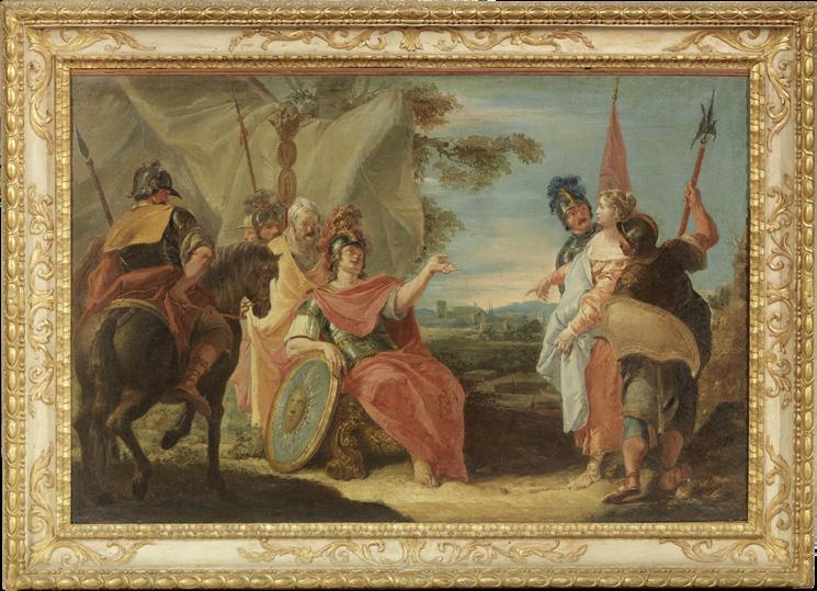 Bibliografia: Marina Magrini, Francesco Fontebasso (17071769), Neri Pozza, Venezia, 1988, n. 227, fig. 139. L’episodio del Vecchio Testamento è stato trattato dal Fontebasso nei modi suoi tipici, con una pennellata brillante e una ricca e variata gamma di colori. La Magrini ritiene che la sua esecuzione sia da porre intorno al 1750, tra la bellissima serie dei “Vari Baccanali et istorie, ecc.”, inventate e incise dal pittore nel 1744, e il gruppo dei dipinti trentini del 1759. Lo fanno pensare la fresca