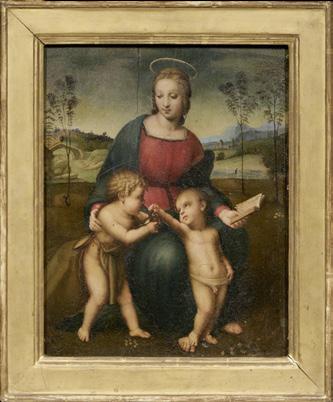 Copia dell’opera di Raffaello Sanzio Madonna col Bambino e San Giovannino detta “Madonna del Cardellino”, Galleria degli Uffizi, Firenze.