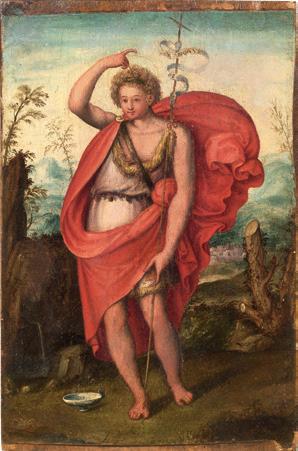 Sullo sfondo di un paesaggio boschivo, accuratamente descritto alla fiamminga, accanto ad una quercia, sta quieta e malinconicamente contemplativa la figura di un San Giovanni, non più adolescente ma ancora imberbe. La tenerezza sentimentale rimanda all’espressione tipica dell’arte fiorentina della prima metà del Seicento, il cui massimo esponente nella pittura devozionale è Francesco Curradi, autore indiscutibile di quest’opera. Egli dopo un iniziale alunnato presso Giovan Battista Naldini, se ne emancipa rivolgendosi alle forme a lui più congeniali del Cigoli e del Pagani, con un’attenzione anche alla pittura riformata di Santi di Tito. Ma è all’inizio del secondo decennio del secolo che si delineano con maggior precisione le caratteristiche del suo stile pittorico: e nel San Giovanni si manifestano appieno nell’accuratezza del disegno, sobriamente composto, dove più evidente si fa il richiamo all’Empoli, e nei toni sommessi della tavolozza vicino al Passignano. Sovente Curradi raggiunge effetti di essenziale semplificazione tali da indurre parallelismi con la contemporanea pittura spagnola, nel nostro caso superandone il patetismo con accenti di accattivante mitezza. Qui in germe si possono intravedere gli sviluppi del suo principale allievo Cesare Dandini, che tuttavia al contrario si rivolgerà spesso a tematiche dichiaratamente sensuali (Il Seicento Fiorentino. Arte a Firenze da Ferdinando I a Cosimo III, catalogo della mostra, Firenze, 1986).