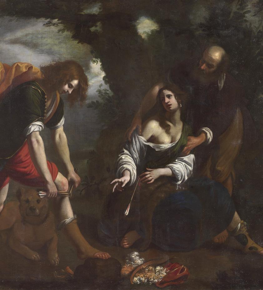 Il dipinto, che sembra illustrare la storia di Silvio e Dorinda, narrata da Giovan Battista Guarini (1538-1612) nel dramma pastorale Il pastor fido, atto IV, scena IX, si pone tra le opere rilevanti del Seicento fiorentino. In precedenza il soggetto era stato interpretato come raffigurante il mito di Cefalo e Procri e assegnato al Fidani la prima volta da Luciano Bellosi (1971), che aveva pubblicato una versione leggermente diversa da questa (cm 183x243), già nella collezione di Piero Bigongiari, Firenze. La presente versione è stata pubblicata per la prima volta in Paragone, 2008, n. 79, da Marina Mojana, che la ritiene “la prima versione del grande dipinto da stanza raffigurante «Silvio, Dorinda e Linco» (olio su tela, cm 200x224,5), firmato in basso al centro sul sasso, sotto il piede del giovane 'Orazio Fidani 1641'/ tavola 47 / di cui si conosceva, finora, l’anonima tela in collezione Bigongiari” (Paragone, n. 79, tav. 47). Si tratta dunque di un’aggiunta notevolissima al catalogo del Fidani, con la certezza della data, 1641, e quindi precedente alla versione realizzata dal Guercino tra il 1646-47, oggi allo Staatliches Museum di Berlino, attestante la grande fortuna del soggetto nel Seicento. Il dipinto, pubblicato nel 2009 anche da Francesca Baldassari in La pittura del Seicento a Firenze, rappresenta al livello più elevato quella poetica pittorica del “recitar cantando” che unisce nel Seicento la pittura fiorentina alla nascita del melodramma.
