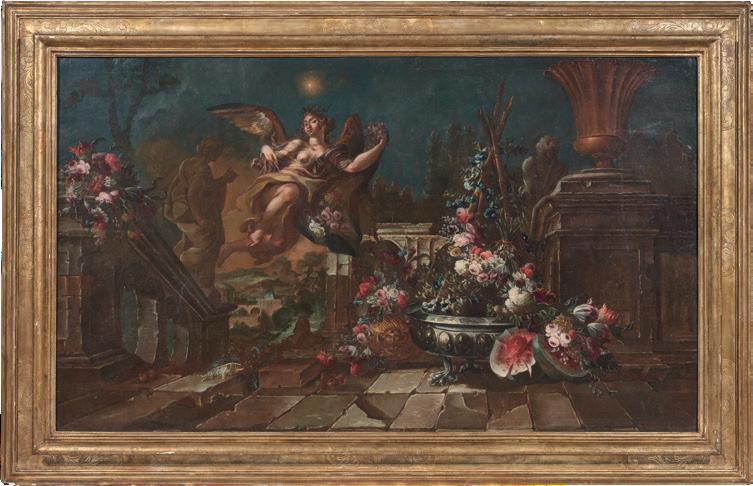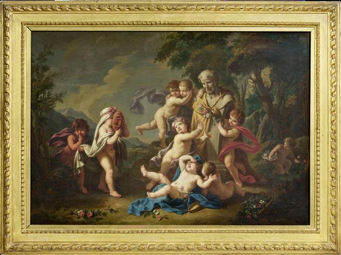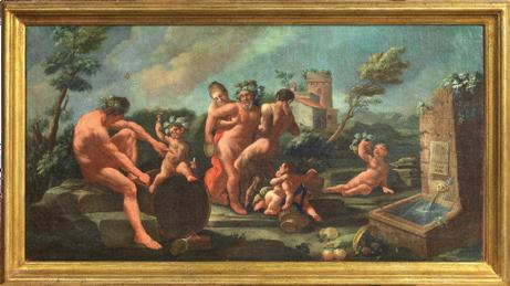Settecento. Per comparazione si veda infatti: A mosca cieca e L’autunno Cinque bambini che giocano con un caprone, di François Boucher (1703-1770), in L’opera completa di Boucher, Classici dell’Arte Rizzoli, Milano, 1980, p. 89, nn. 59, 60; Allegoria della Musica (Putti musicanti) e Allegoria del Disegno (Putti che disegnano) di François Le Moyne in François Le Moyne (1688-1737) and his generation, di Jean-Luc Bordeaux, Arthena, NeuilleSur-Seine, 1985, figg. 65, 66. Stima € 4.000 / 6.000