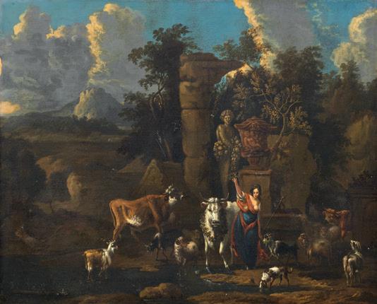 Paesaggio campestre con pastore e armenti