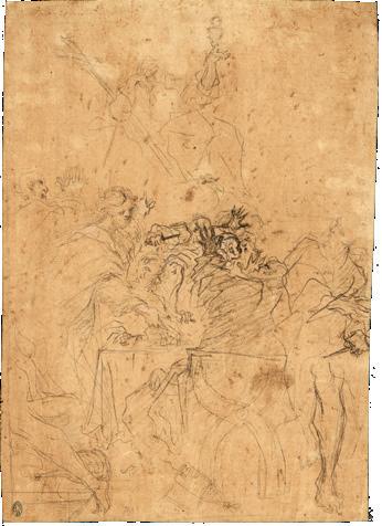 Bibliografia: Disegni emiliani del Sei-Settecento. Come nascono i dipinti, a cura di Daniele Benati, introduzione di Renato Roli, Carimonte Banca, Modena, 1991, p. 235, n. 64.1. Questo studio preparatorio per il dipinto Cristo rimprovera i negatori dell’Eucarestia (lotto n. 62), ritenuto da Renato Roli uno dei dipinti più importanti del corpus dell’artista, testimonia la qualità dell’opera grafica di Viani. Rispetto al dipinto questo disegno documenta l’idea e la composizione nel suo nascere ed esalta la natura barocca più che classicista del Viani. Per una completa descrizione dell’opera si rimanda alla scheda del dipinto redatta da Renato Roli in Disegni emiliani del Sei-Settecento, 1991, p. 233.