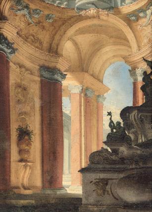 in molte chiese lombarde, a Cremona e nel bergamasco. Il suo Barocco maturo mostra degli echi evidenti di un rapporto con la pittura veneta contemporanea. Questi due dipinti di paesaggio e figure, in relazione all’altro pendant (lotto n. 70), rappresentano la pittura del Monti al suo livello più alto. Eccellente la resa dei paesaggi organizzata su tre quinte: il primo piano con le figure riferite all’episodio letterario, il secondo piano con lo scorcio fluviale-arboreo e altre figure riferibili alla scena, il terzo piano con i monti in lontananza secondo una sfumata prospettiva aerea. Le due scene, concepite come pendant, si ispirano ai paesaggi e alle vicende della Gerusalemme Liberata, composta nel 1570-75 da Torquato Tasso (1544-1595) per il duca Alfonso II d’Este, signore di Ferrara, e vi sono parzialmente identificabili Erminia e Armida. Le due opere si segnalano per qualità tra quelle più fini della produzione dell’artista.