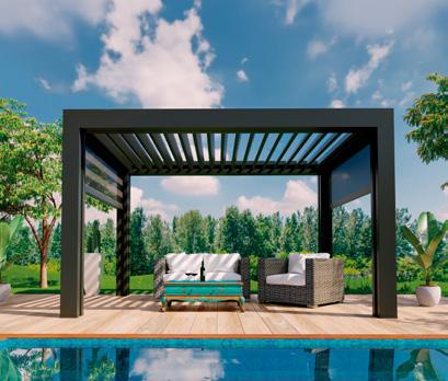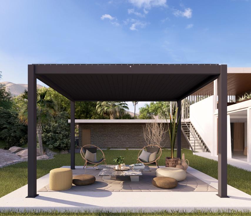 Fabricadas con una aleación premium de aluminio y magnesio de titanio, combinan alta resistencia y durabilidad con un diseño moderno y un techo de lamas orientables que permite regular la entrada de luz y protegerte de la lluvia o el viento, creando un ambiente cómodo y agradable en todo momento.
