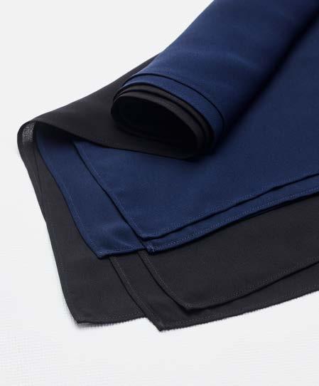 Silk-like hand feel with a hint of lustre for added sophistication. High twist and high-density yarn ensures no static cling.