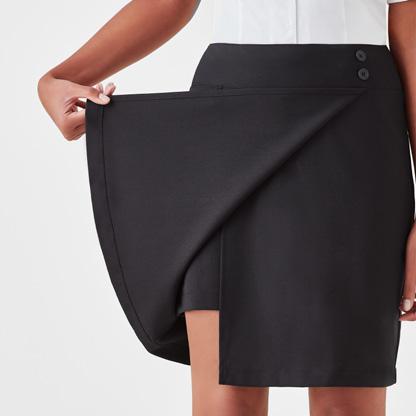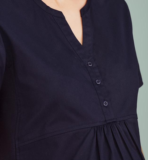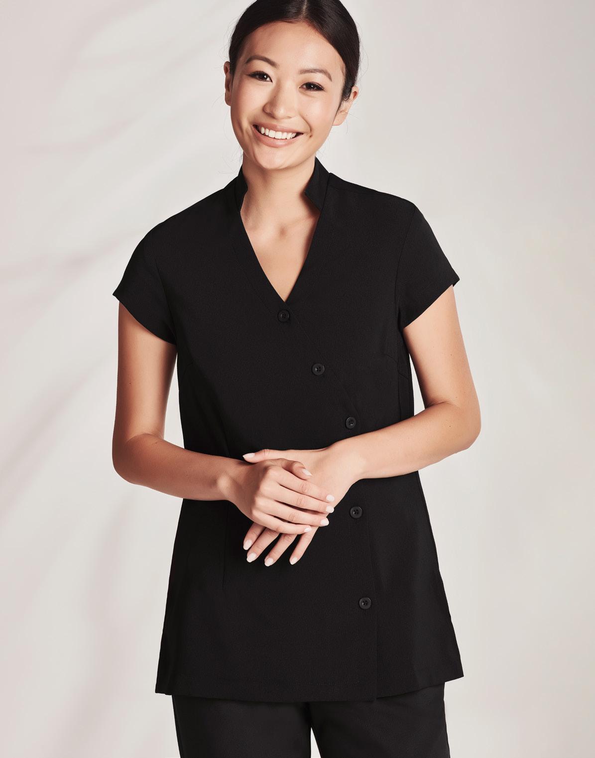 Biz Collection Spa tunic comes in a stretch fabric with linen-like appearance. Dupont™ Teflon ® stain release function, asymmetrical mock-wrap front, with invisible centre back zip and deep side splits.