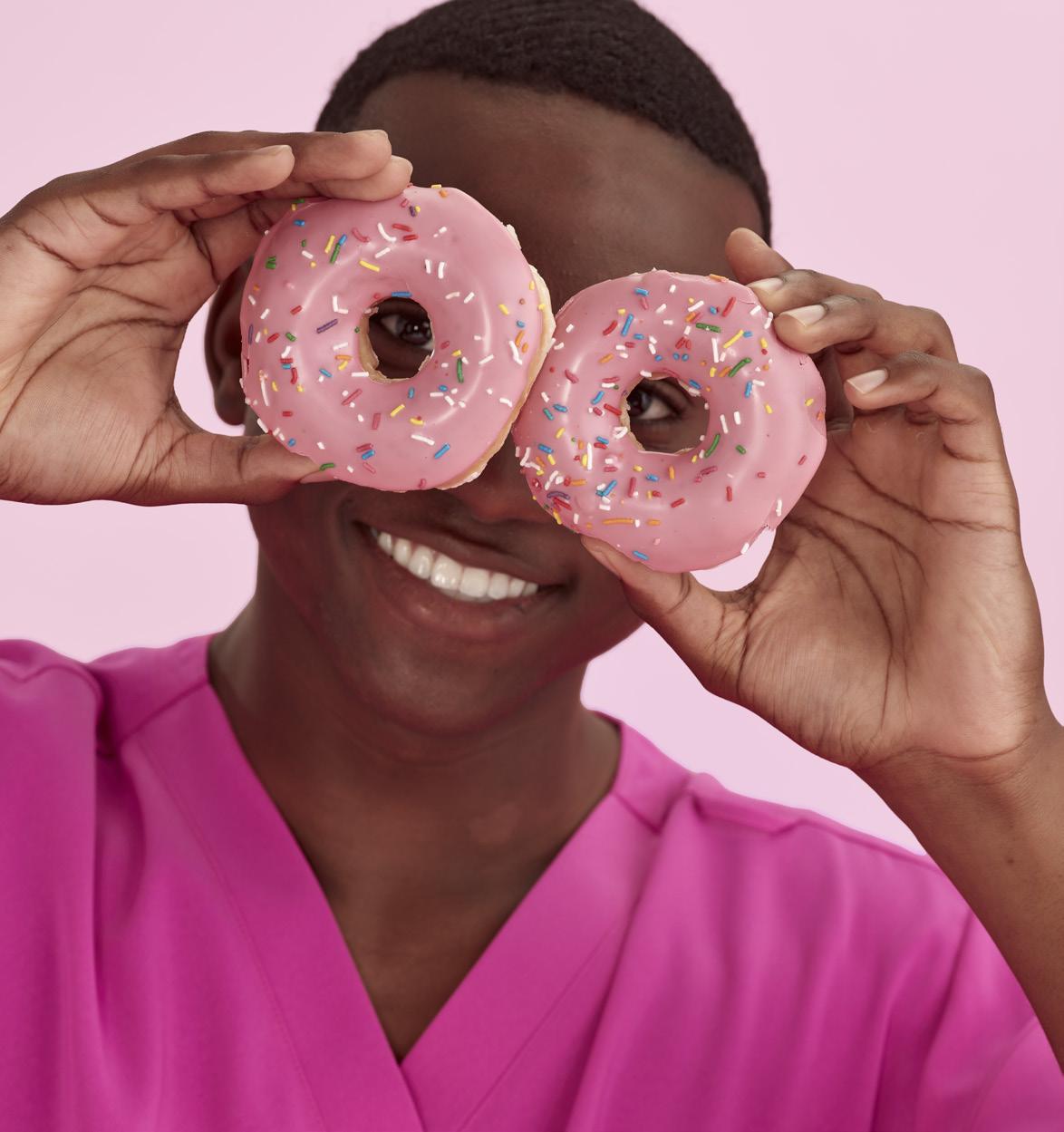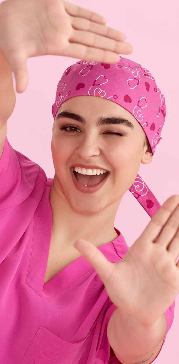 I live in my grape Riley scrubs- the vibrant colour cheers my patients up. I also love my navy Averys - they honestly feel like I’m wearing silky soft pajamas.