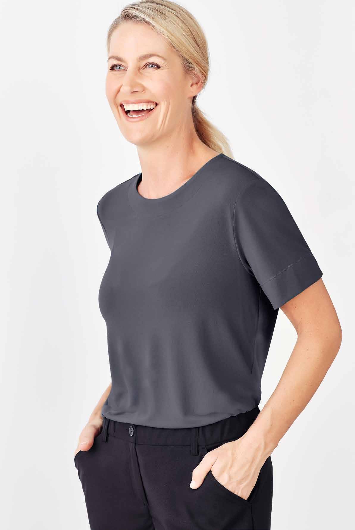 Biz Collection Spa tunic comes in a stretch fabric with linen-like appearance. Dupont™ Teflon ® stain release function, asymmetrical mock-wrap front, with invisible centre back zip and deep side splits.