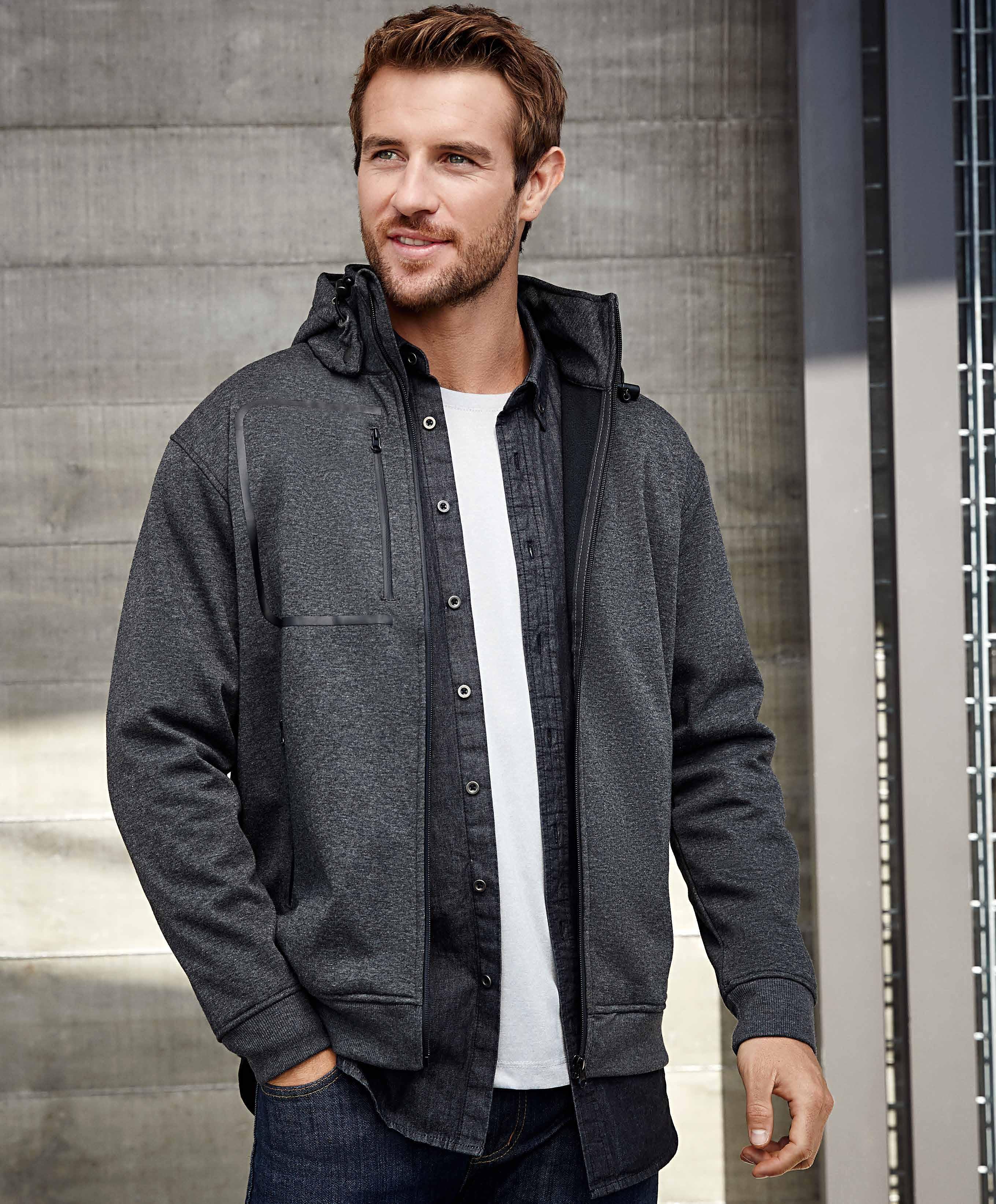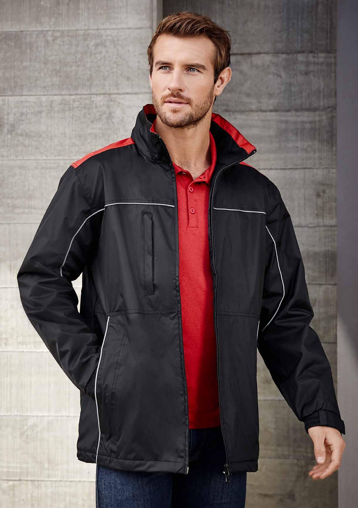 FEATURES Matching knitted collar • Contrast sleeve and side panels • Mens style includes loose pocket
