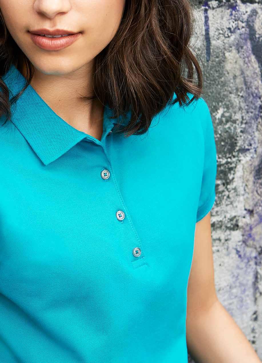 FABRIC 80% Polyester, 20% Cotton-backed Pique • BIZ COOL™ Breathable Cotton-backed Pique