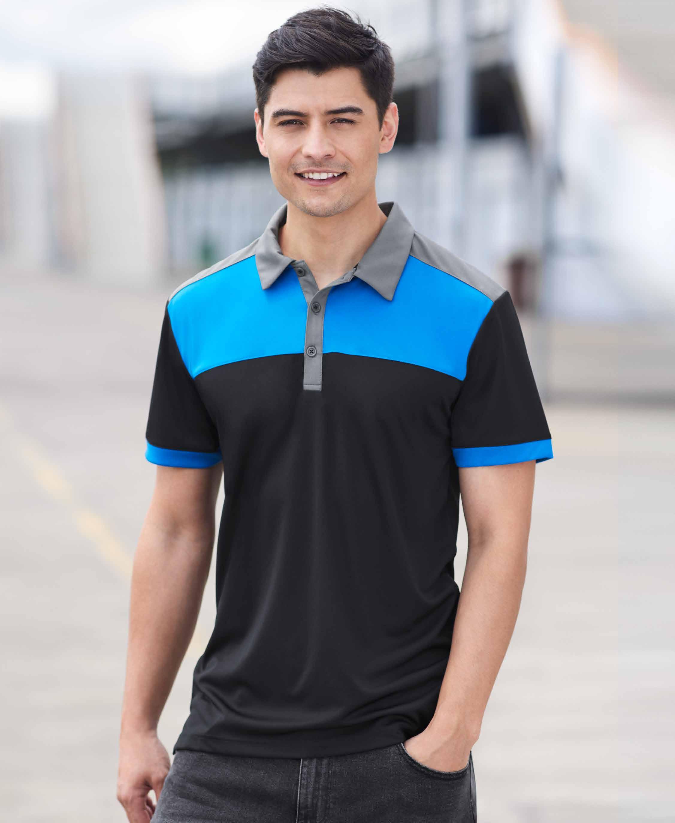 FEATURES Breathable BIZ COOL™ sports knit keeps you cool and dry • Knitted rib collar with pearlized buttons • Longer length can be worn out or tucked in • Mens style includes loose pocket