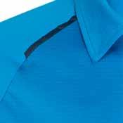 FEATURES Honeycomb weave with stretch elastane • Flat knitted collar with contrast button placket • Side panels with dynamic contrast piping • Unique print features on torso, sleeve and back neck to accent your logo • Longer length for added coverage when moving • Mens style includes loose pocket