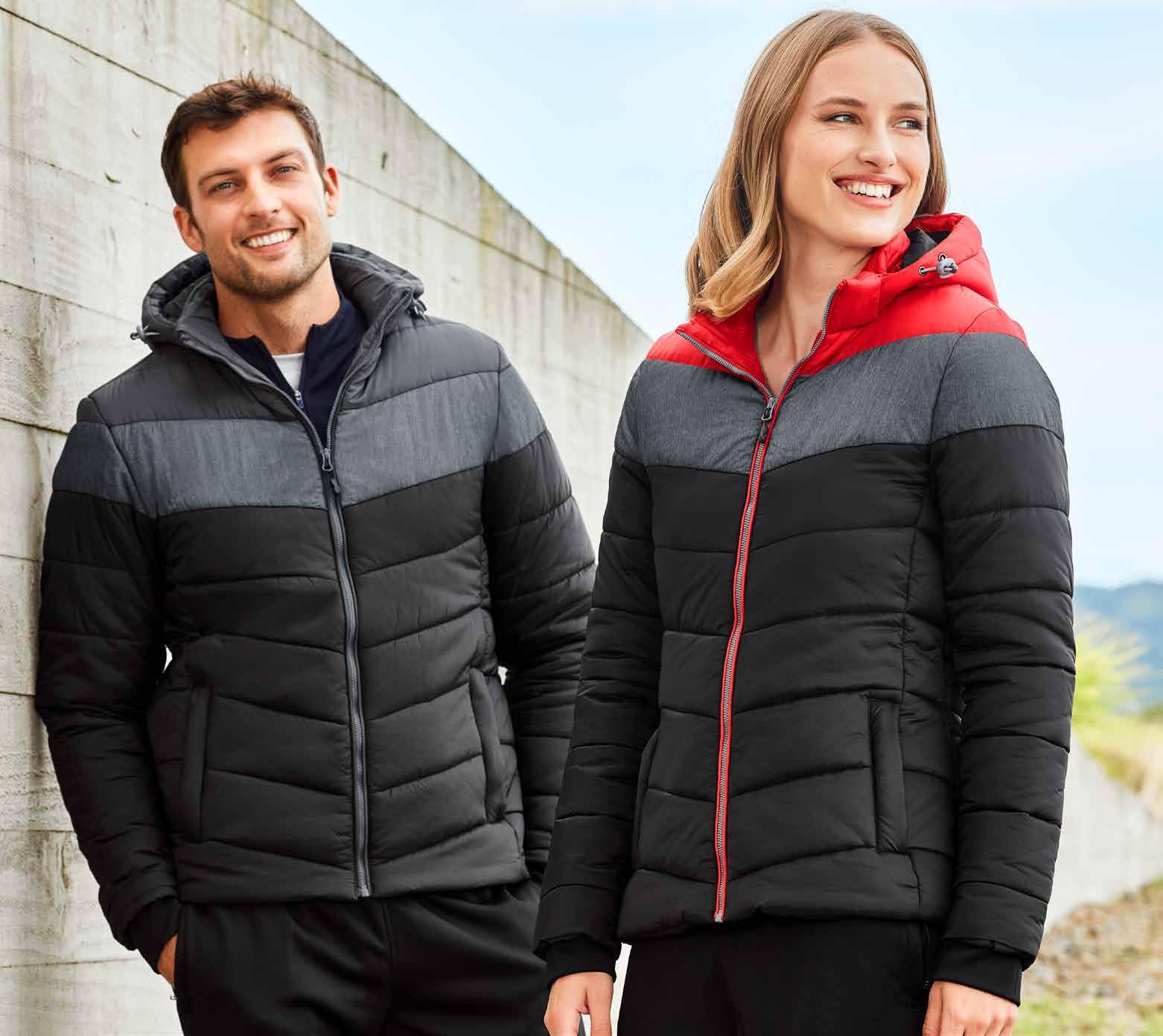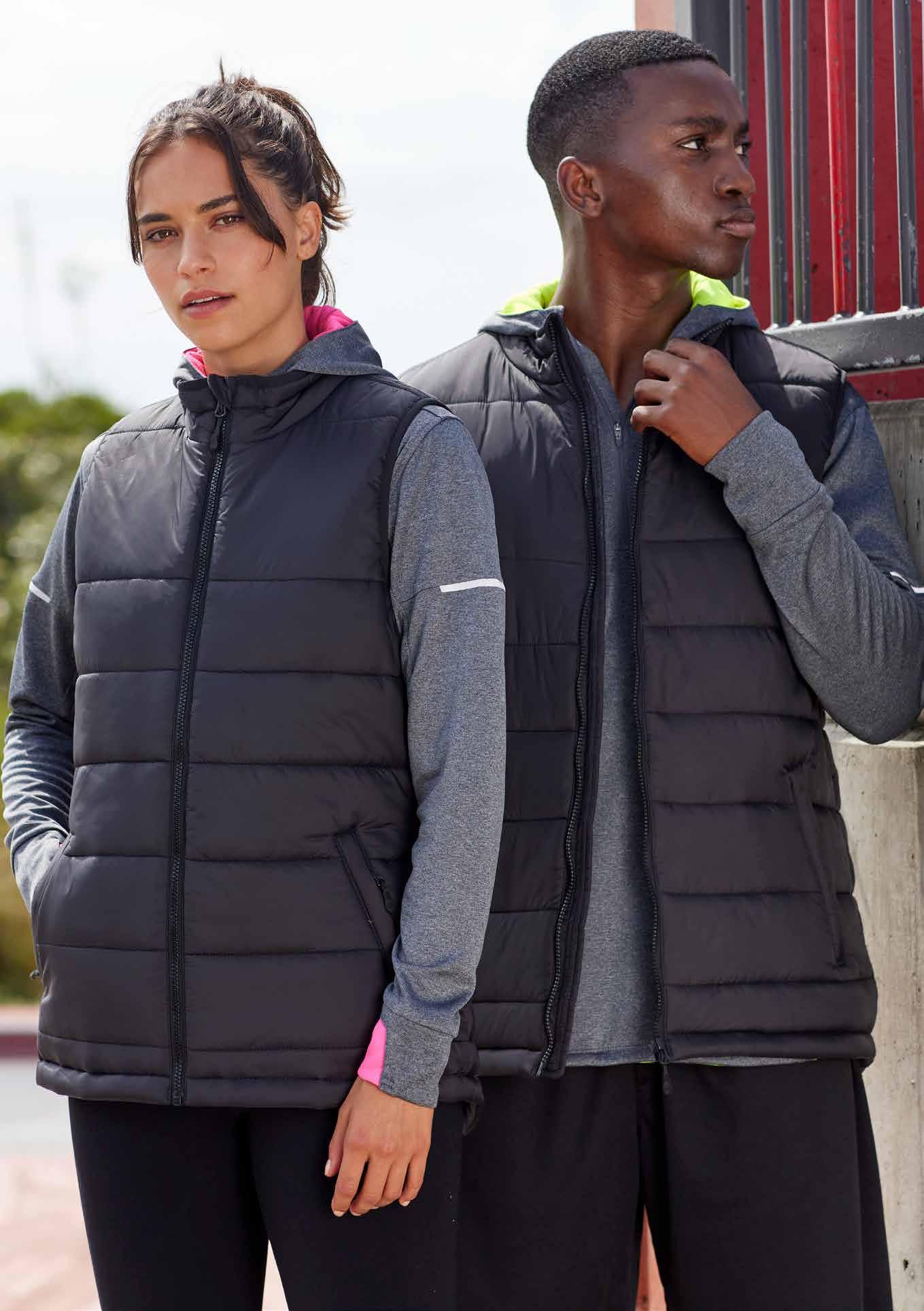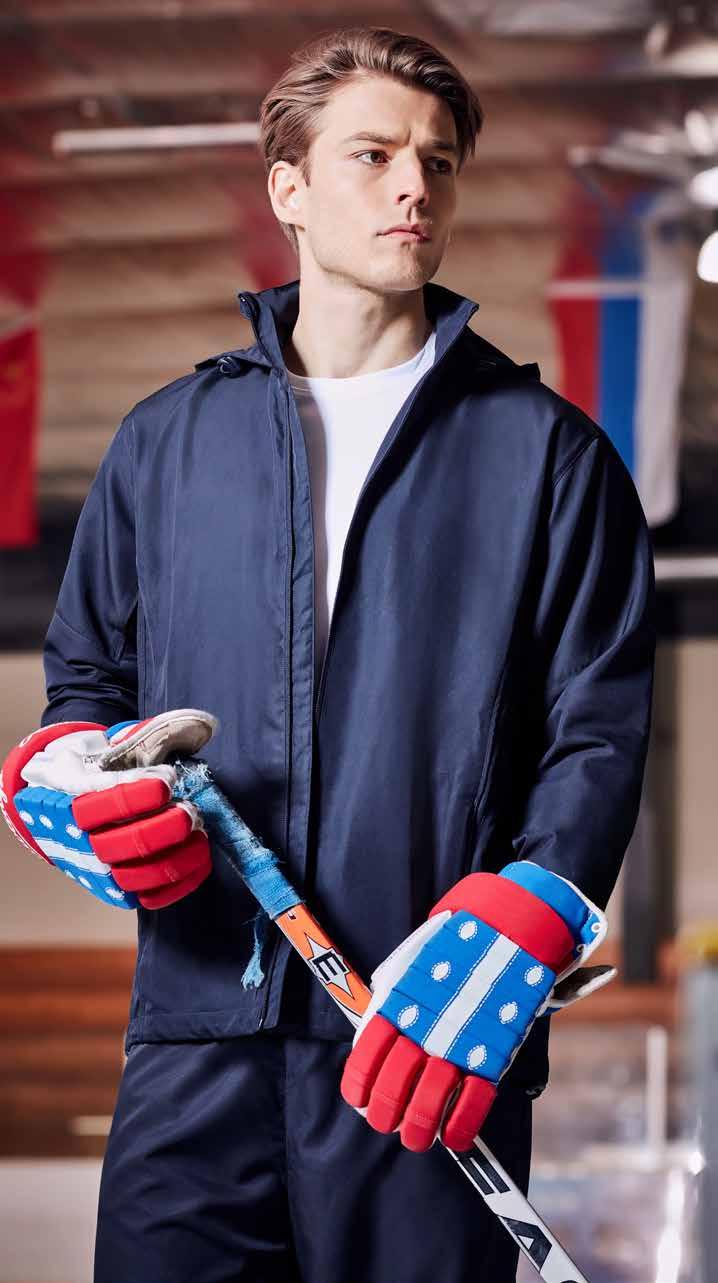 FEATURES Grid mesh underarm panels for breathability • Stow-away hood • Sleeve print feature with adjustable cuff fasteners • 2 Zippered pockets • Contrast panels, piping and inside placket