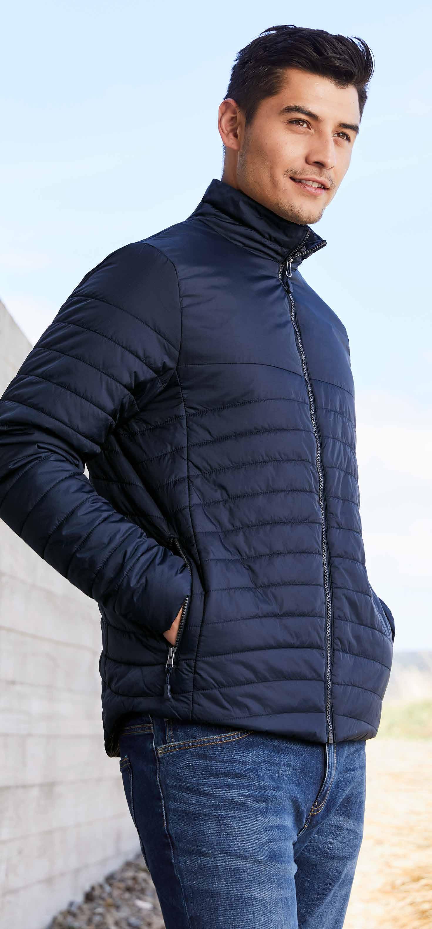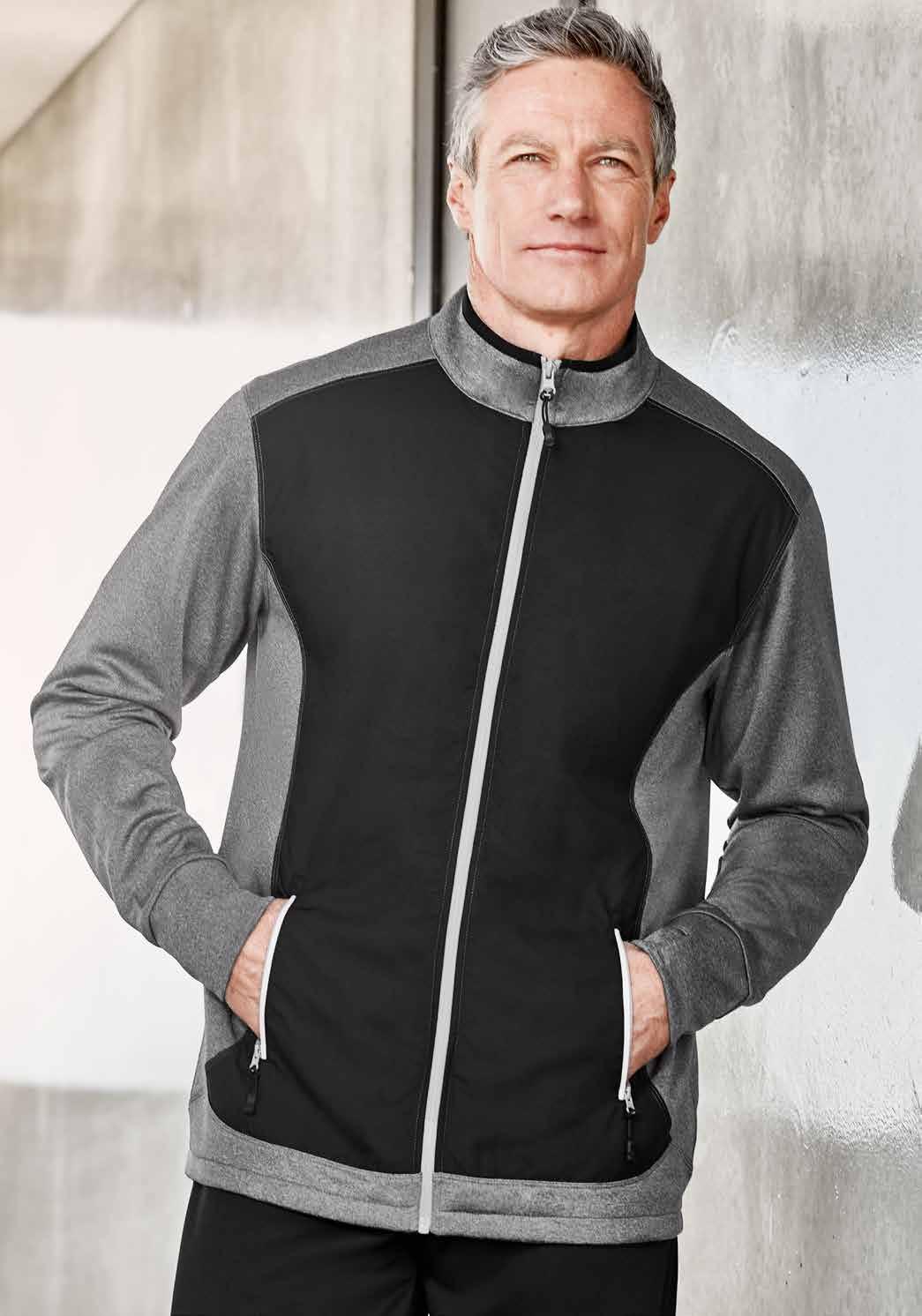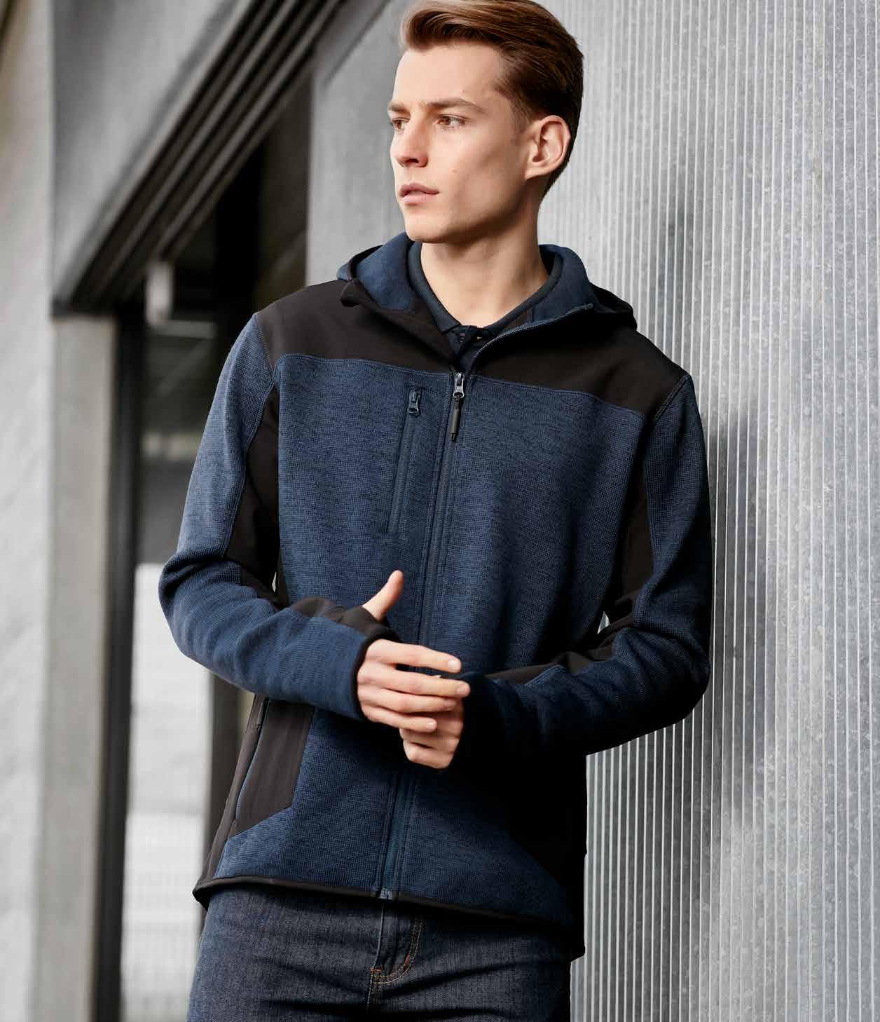 FEATURES Matching knitted collar • Contrast sleeve and side panels • Mens style includes loose pocket