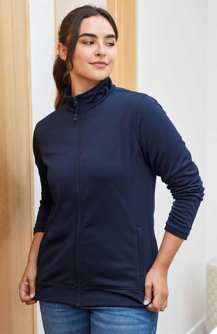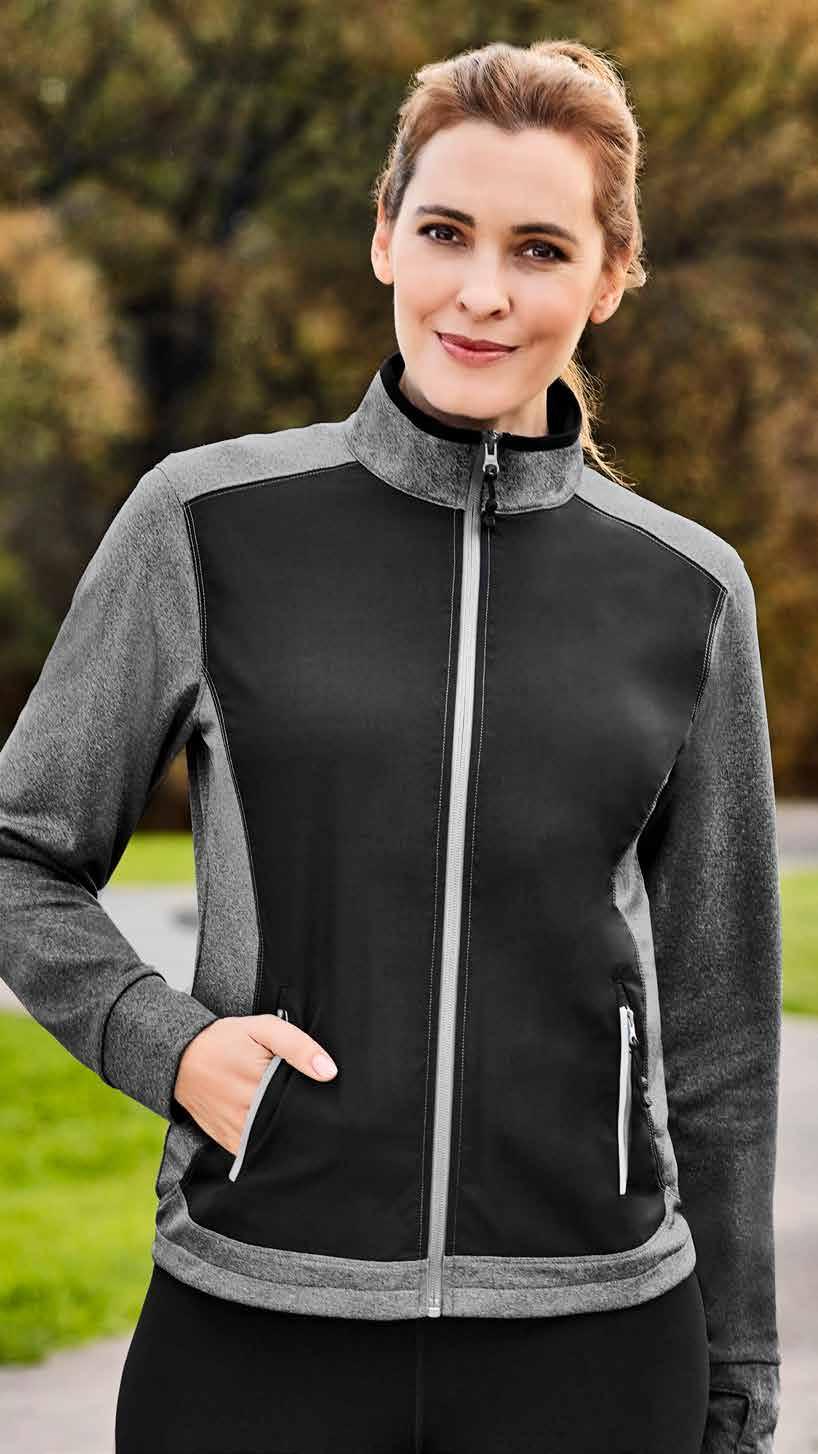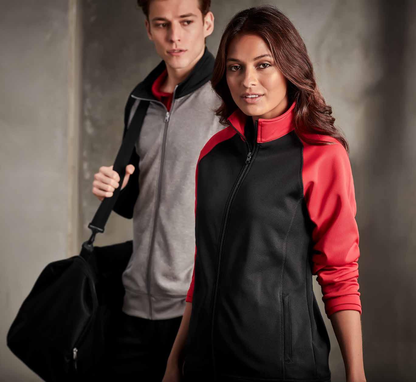 FEATURES Matching knitted collar • Durable flat lock raglan sleeve • Mens style includes loose pocket • Womens style features slimline placket