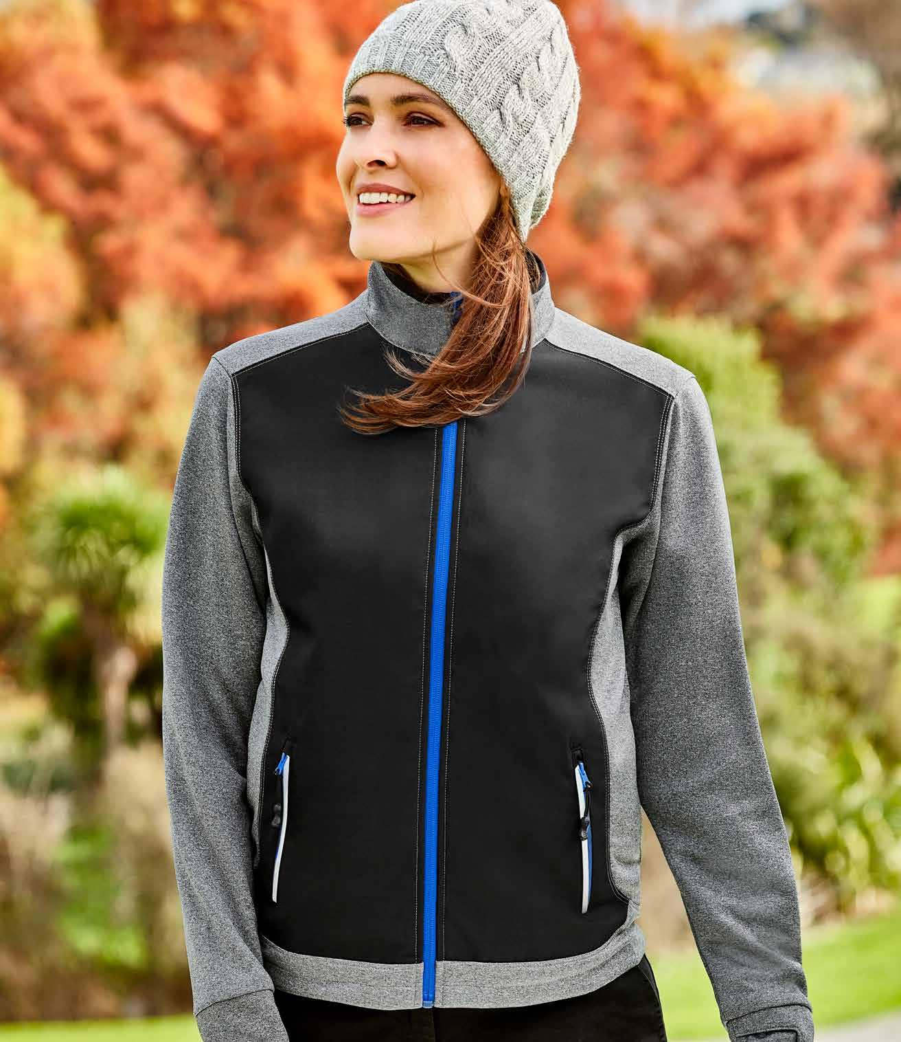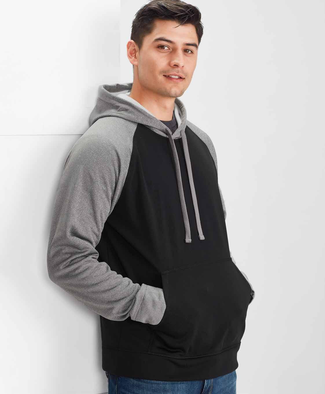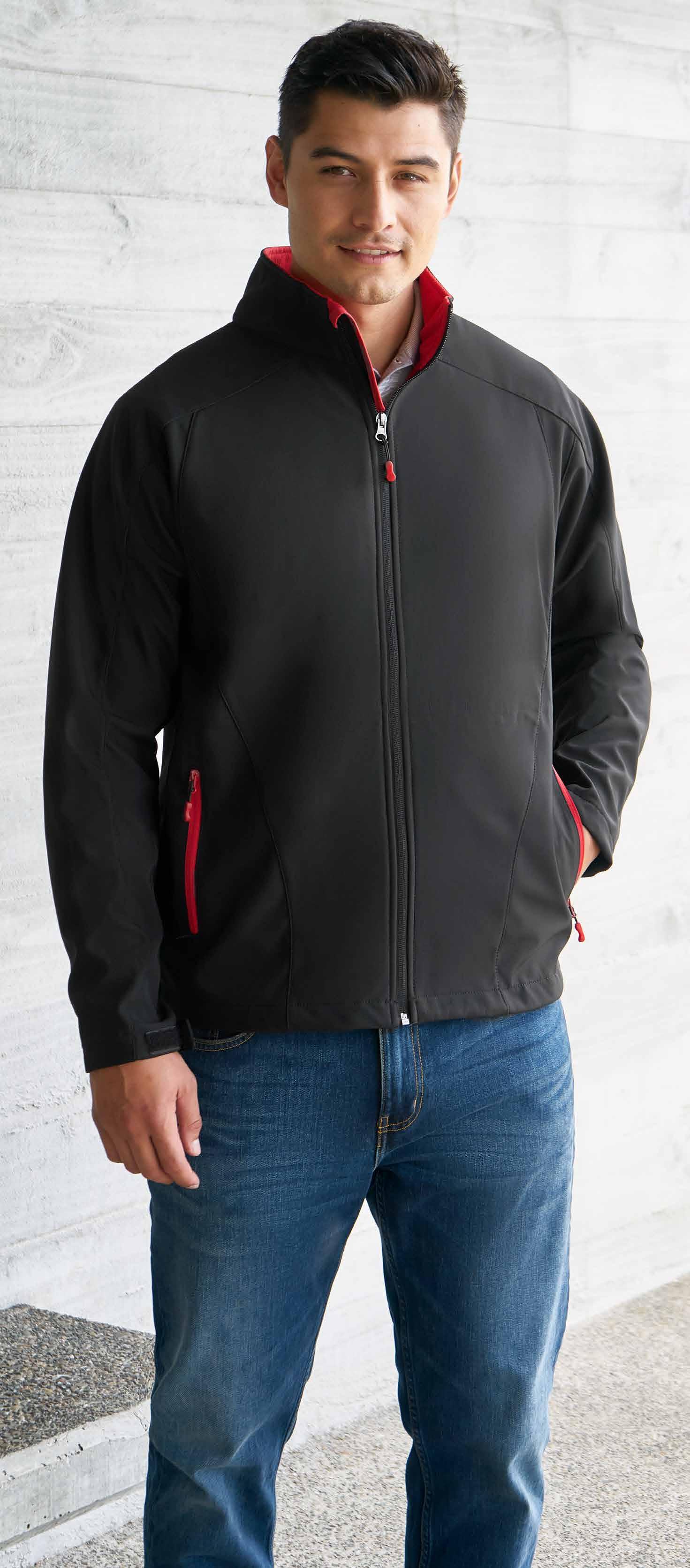 FEATURES Matching knitted collar • Durable flat lock raglan sleeve • Mens style includes loose pocket • Womens style features slimline placket