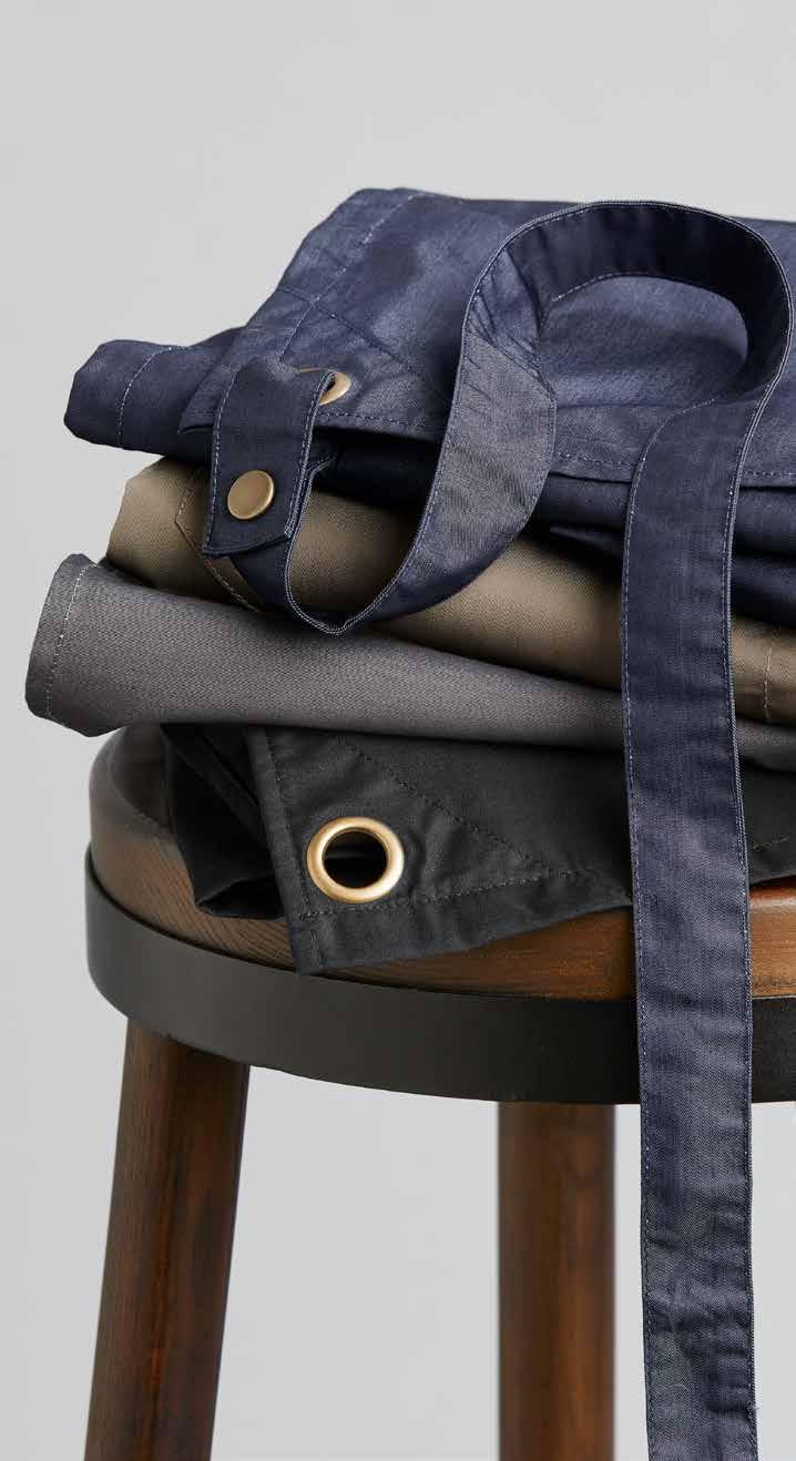 FEATURES Comes with removable self-fabric X-back straps • Divided front pocket • Reinforced stitching and antique brass fittings • Free size 31.5in x 35.4in • Interchangeable mix ‘n match BA52 bib apron straps available BLACK