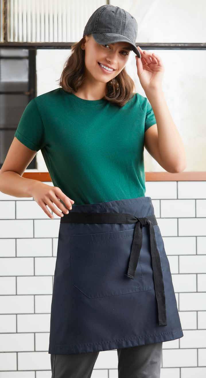 BA75 BIB APRON $37.40 FABRIC 100% Cotton Quality Textured Fabric 7.1 oz/yd 2An essential black waist apron is a must have in any food service industry. Made from reliable, colourfast poly cotton twill and featuring large front pocket and a handy loop.