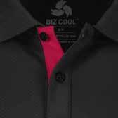 FABRIC 97% Polyester, 3% Elastane • 180 GSM • BIZ COOL™ Breathable stretch honeycomb knit • UPF 50+