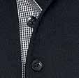 FEATURES Semi-fitted button through wrap over styling • “V” Shaped neck with mandarin collar