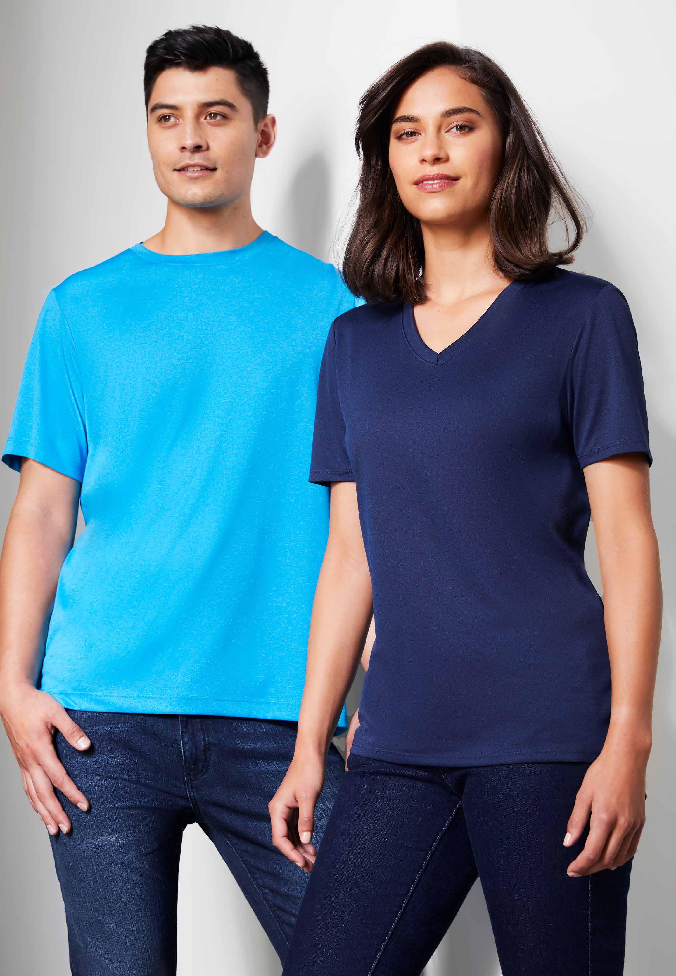 FEATURES Breathable BIZ COOL™ sports knit keeps you cool and dry • Knitted rib collar with pearlized buttons • Longer length can be worn out or tucked in • Mens style includes loose pocket