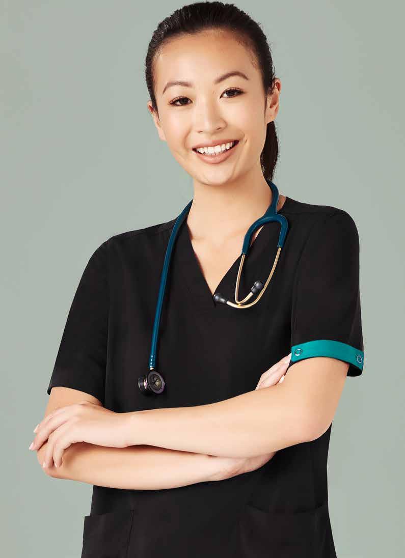 Completing our recent offerings for Biz Corporates and Biz Care, we’ve launched the Melbourne Jacket and Avery scrubs in Burgundy.