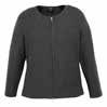 FEATURES Semi-fitted concealed button through front with 2 lower front pockets • Collarless with “V” shaped neck detail • Centre back action-back pleat • Longer line with deep side splits
