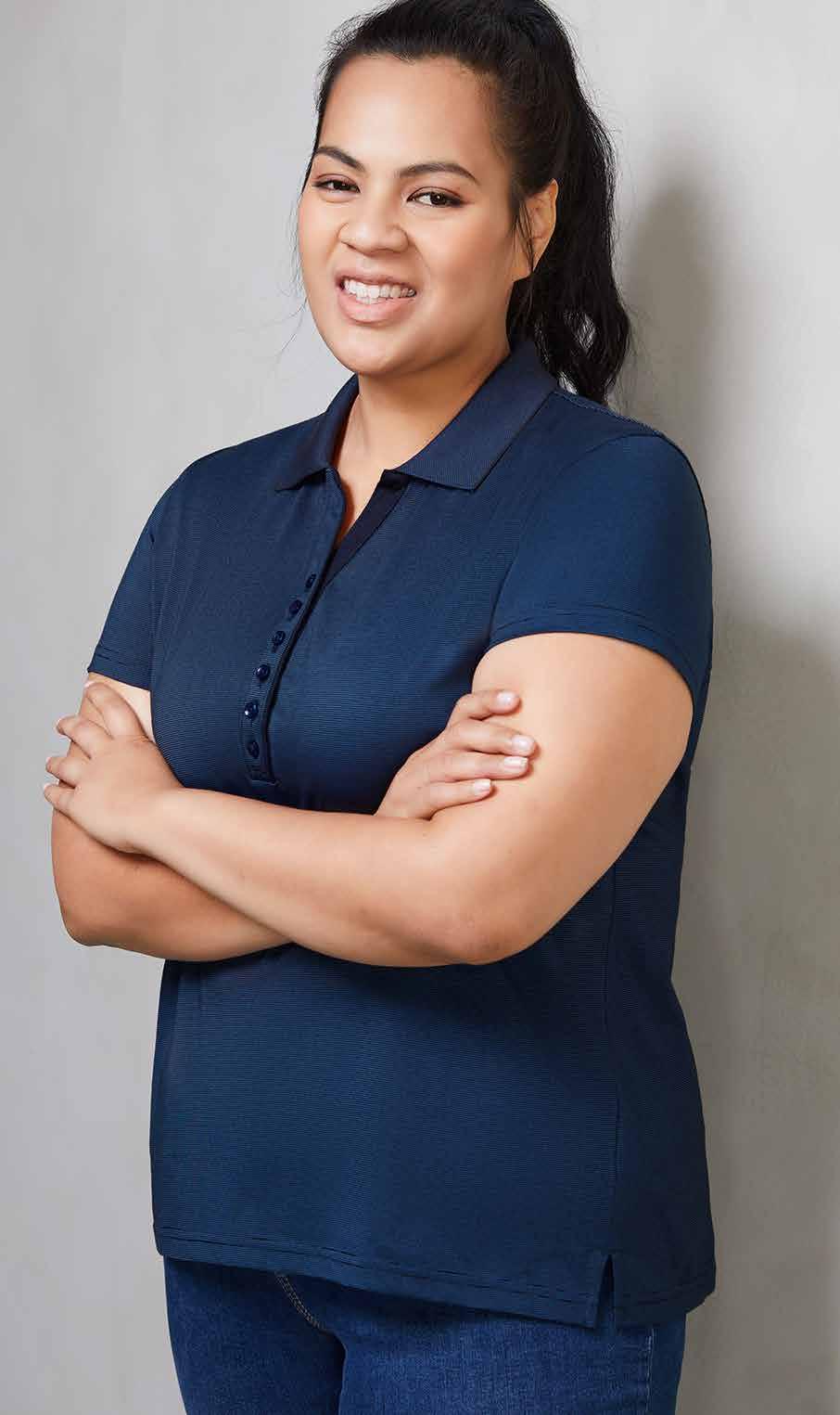 FABRIC 97% Polyester, 3% Elastane • 180 GSM • BIZ COOL™ Breathable stretch honeycomb knit • UPF 50+