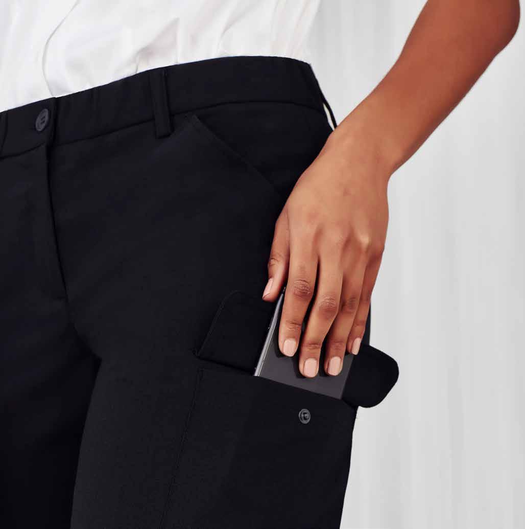 • Streamlined pockets provide a clean and tailored appearance, and are less like industrial workwear pockets (cargo pant only).