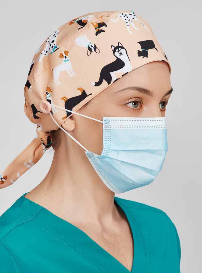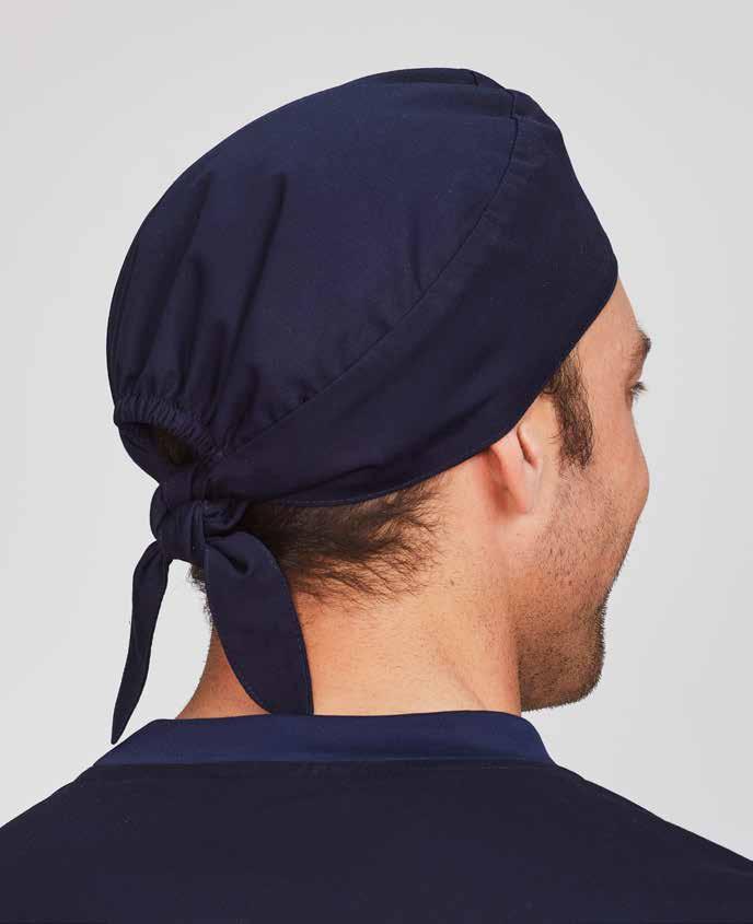 Featuring elastic back and tie, designed to stretch easily over buns. Printed Caps feature side buttons for your mask. Plain Caps are reversible and feature antibacterial protection.