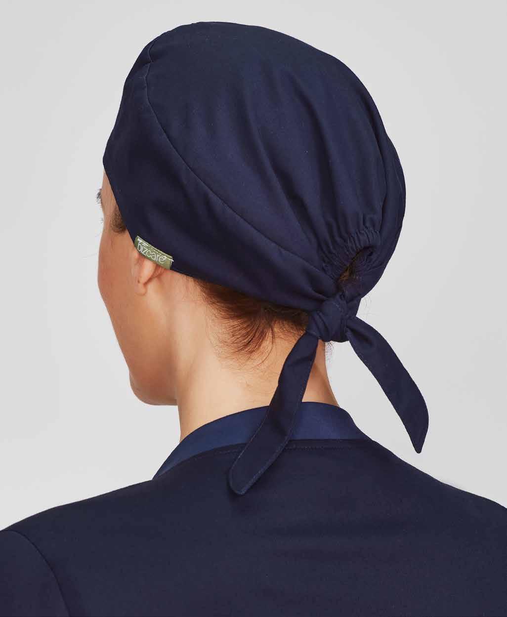 Reversible scrub caps, perfect for industrial laundering. Made from cotton blend fabric with antibacterial protection. Featuring elastic back and tie, designed to stretch easily over buns.