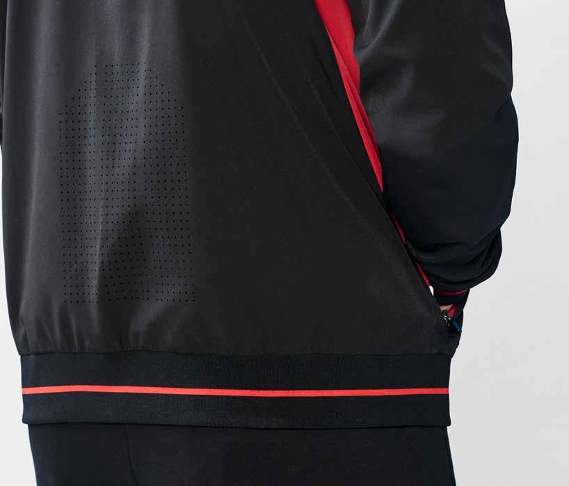 FEATURES Stylish crossover feature with contrast trim • 2 Front welt pockets with contrast stitching detail • Side splits