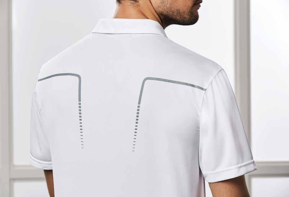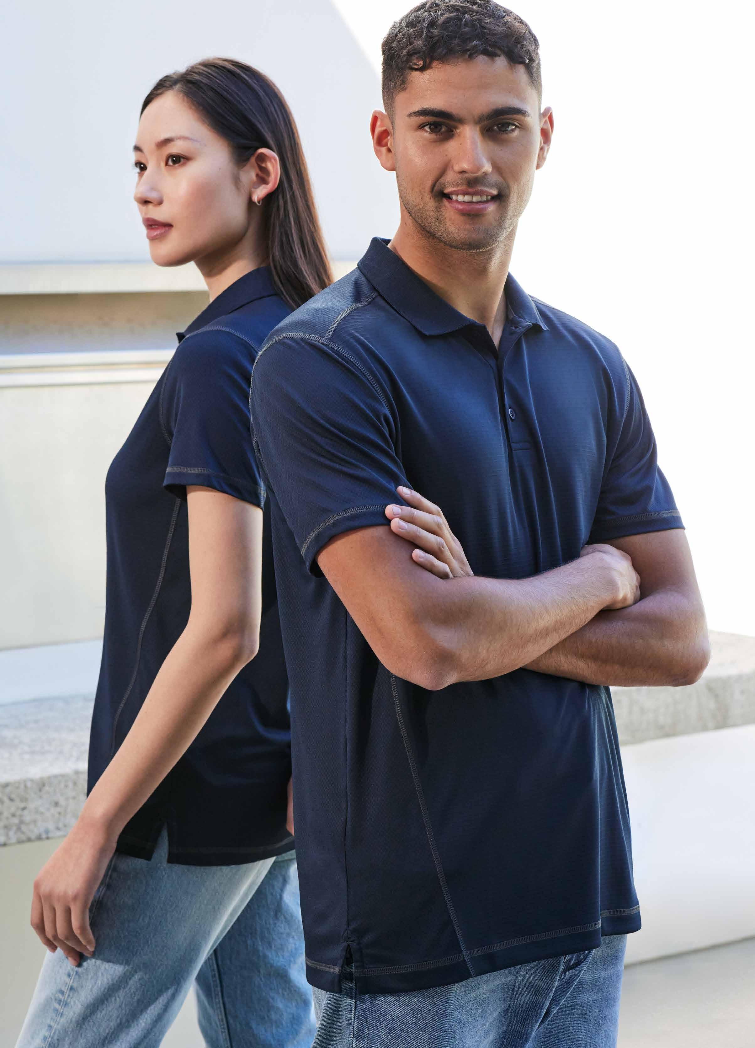 FABRIC 97% Polyester, 3% Elastane • 180 GSM • BIZ COOL™ Breathable stretch honeycomb knit • UPF 50+