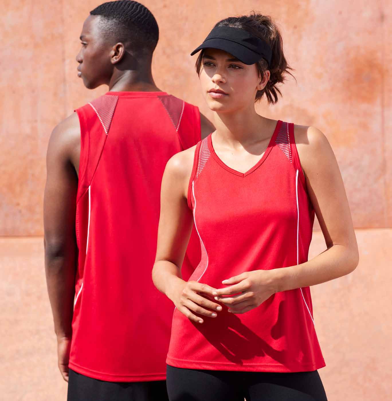• Knitted rib collar • Mesh contrast colour body and shoulder panels • Silver piping on body seams • Button through placket • Mens style includes loose pocket