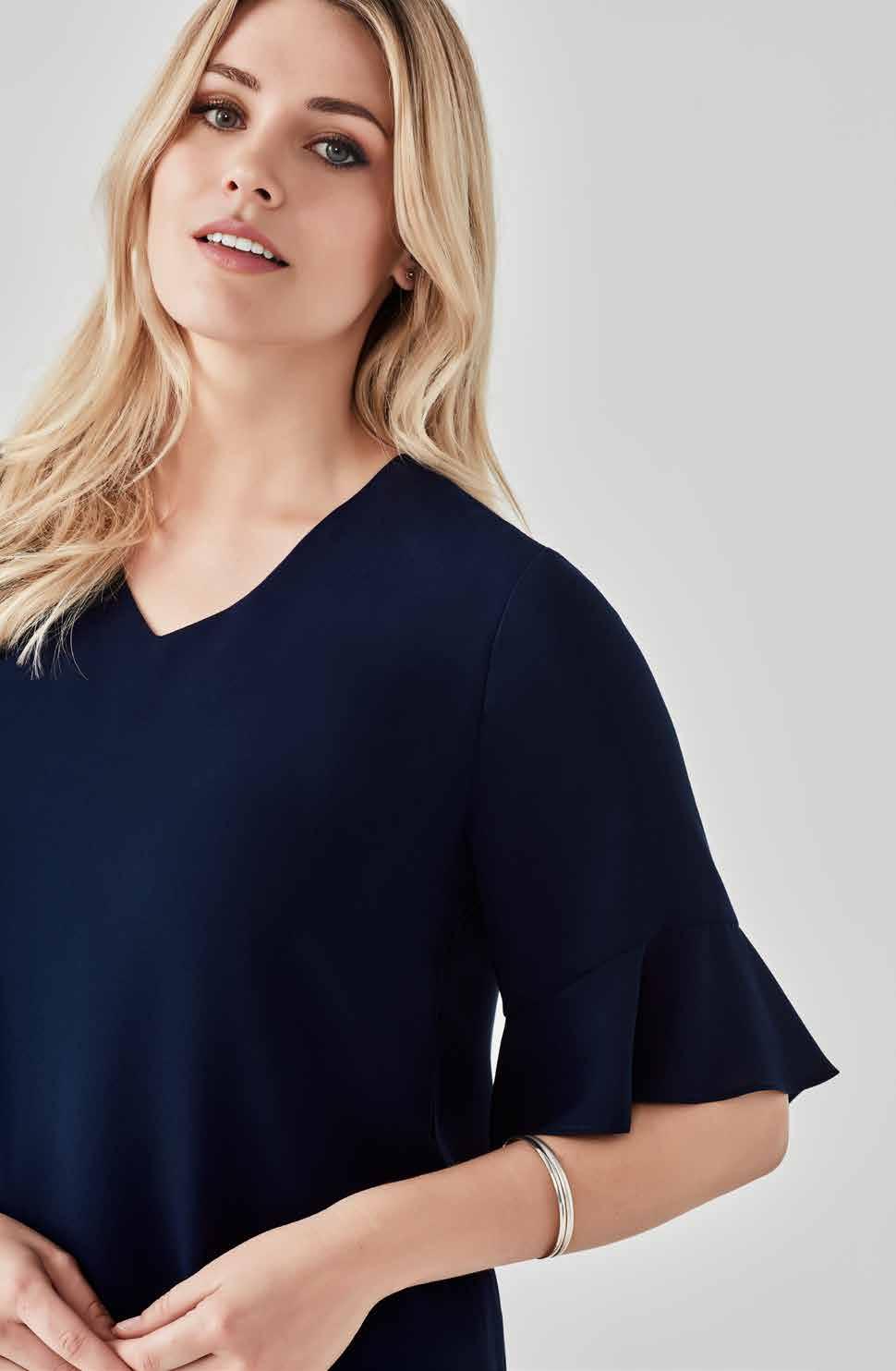 Designed to sit loosely on the body, Vienna features breezy fluted sleeves and a longer curved back hem for extra coverage. Single layer fabric front and back.
