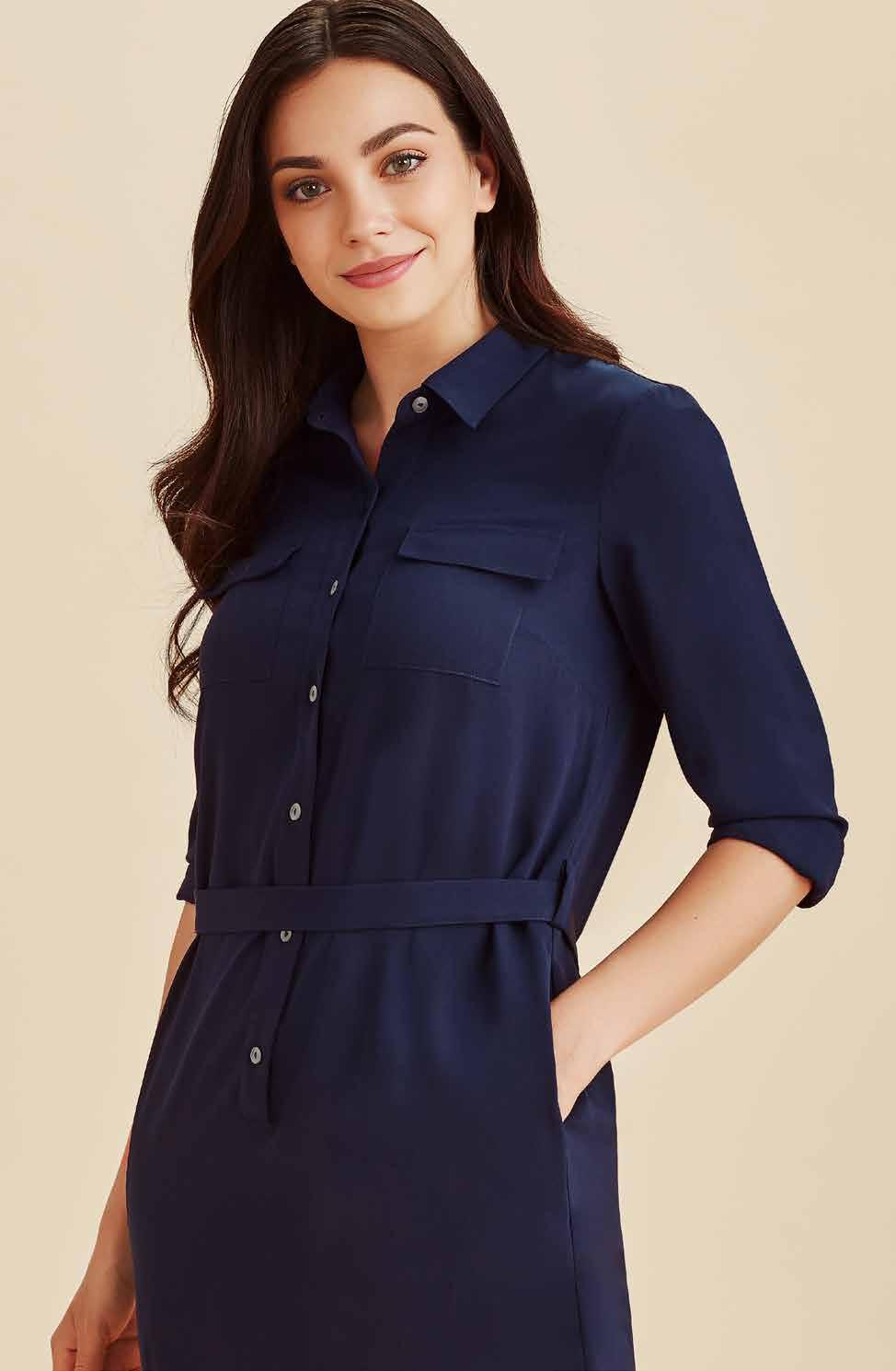 Semi-fitted style, with a relaxed fit through the body. Concealed front placket, dart detailing and secret bust button located inside the placket.