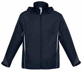 • Stow-away hood • Sleeve print feature with adjustable cuff fasteners • 2 Zippered pockets