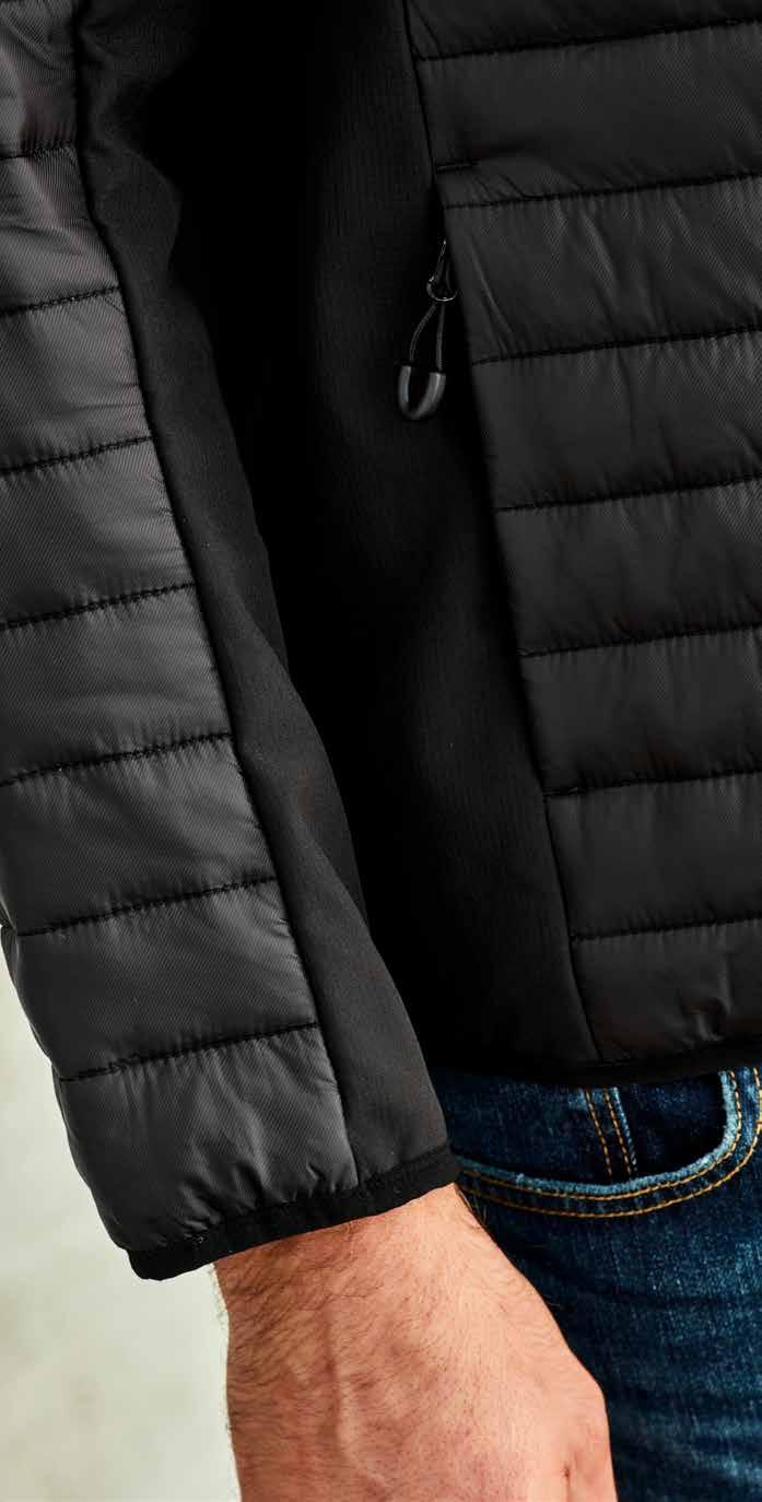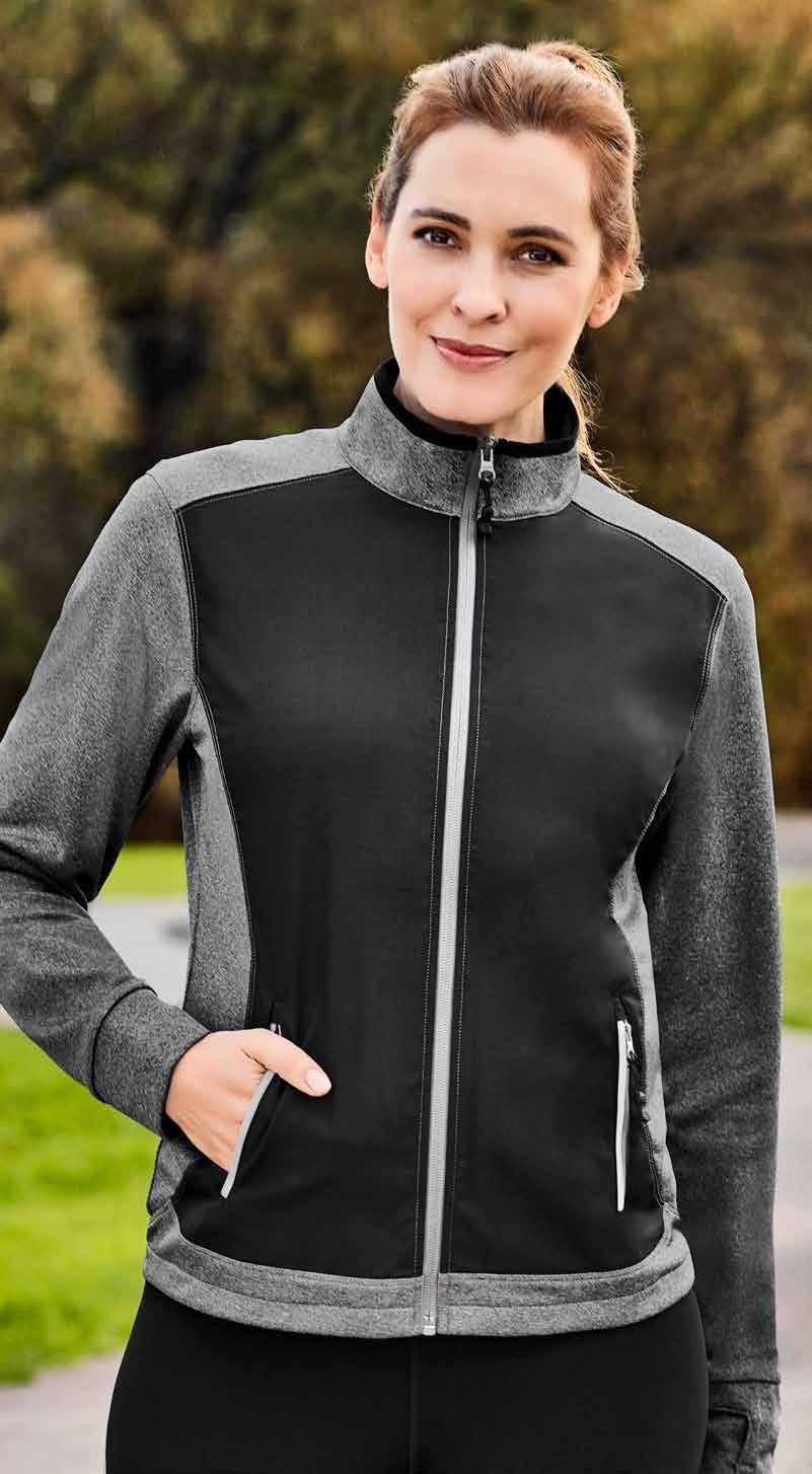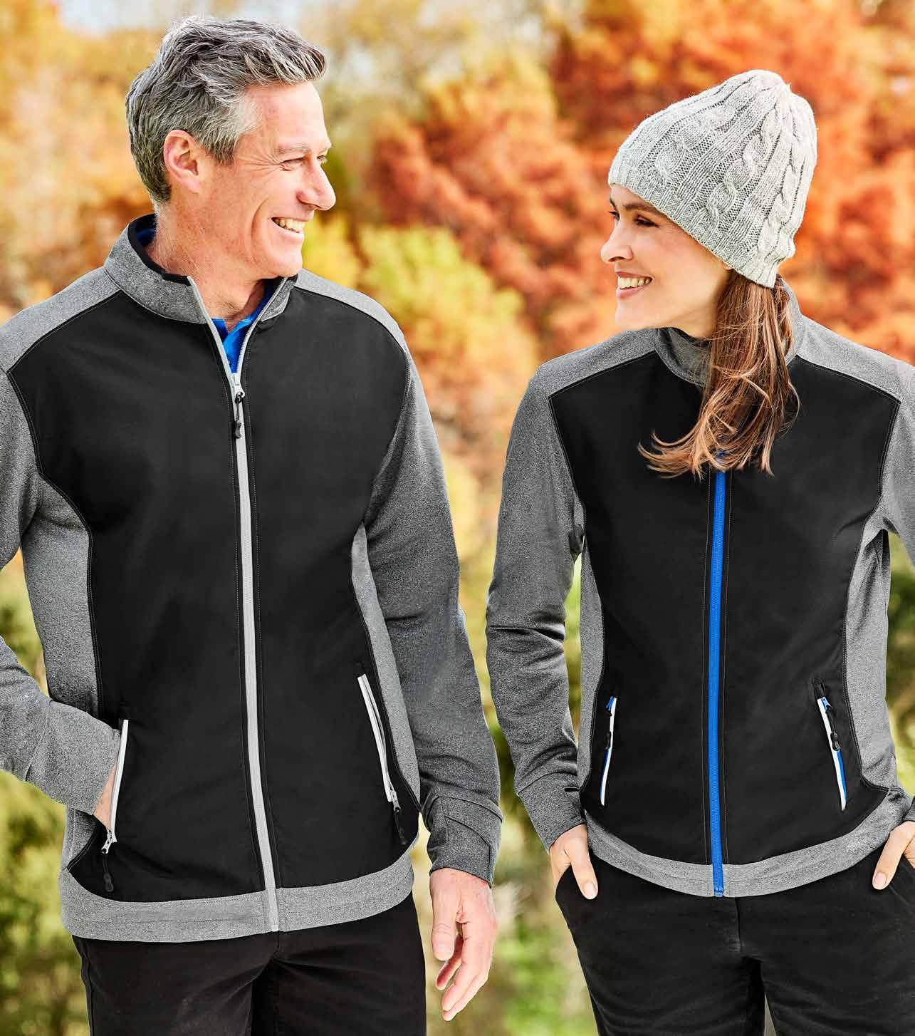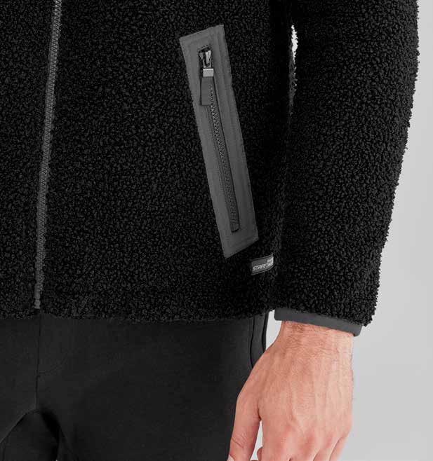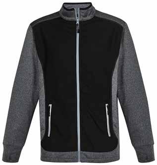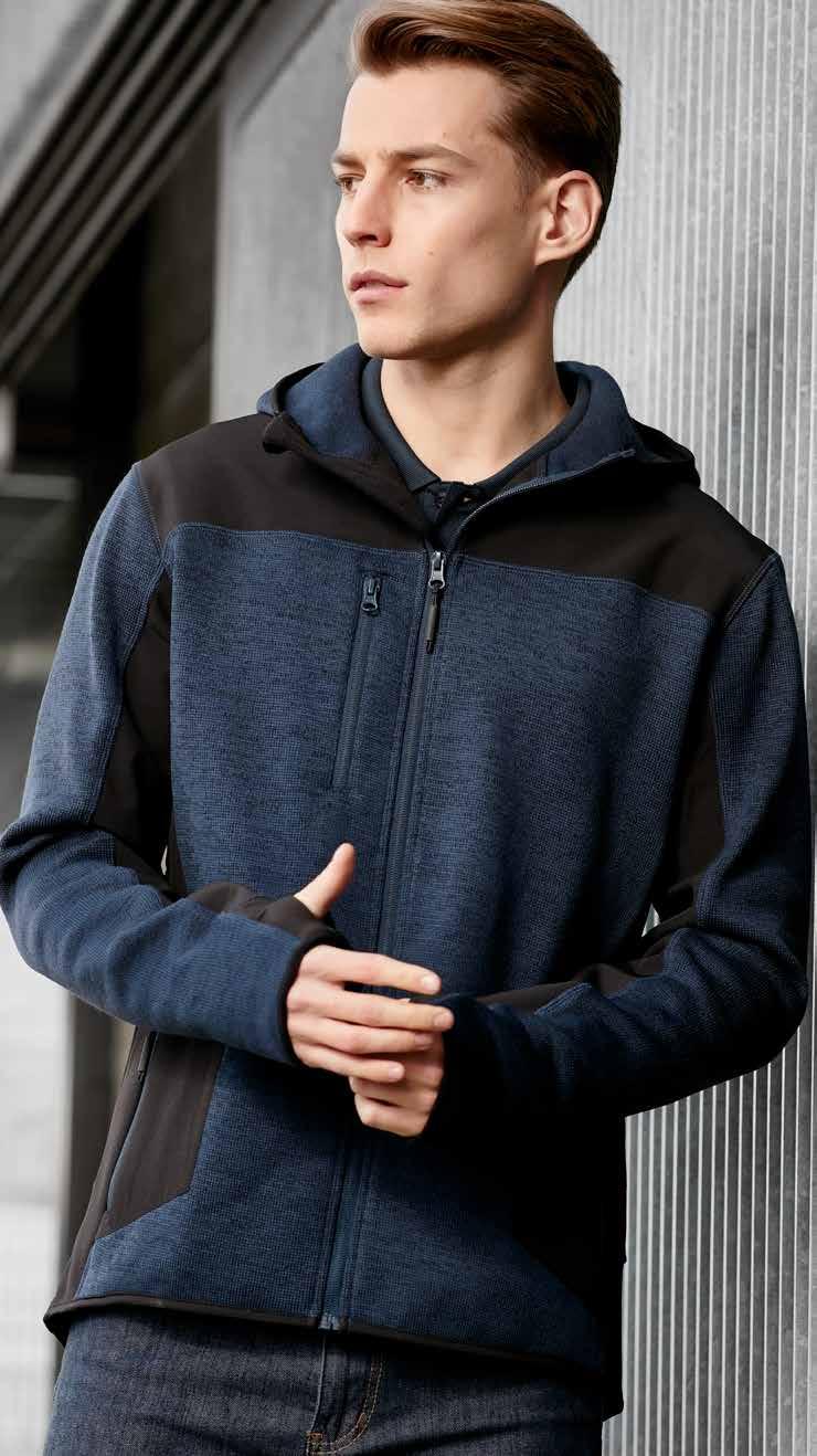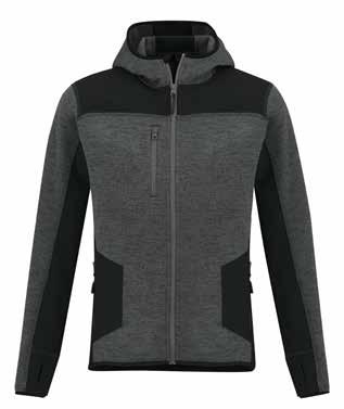 CARACTÉRISTIQUES Col tricoté assorti • Manches et panneaux de côté contrastants • Le style hommes inclut une poche détachée