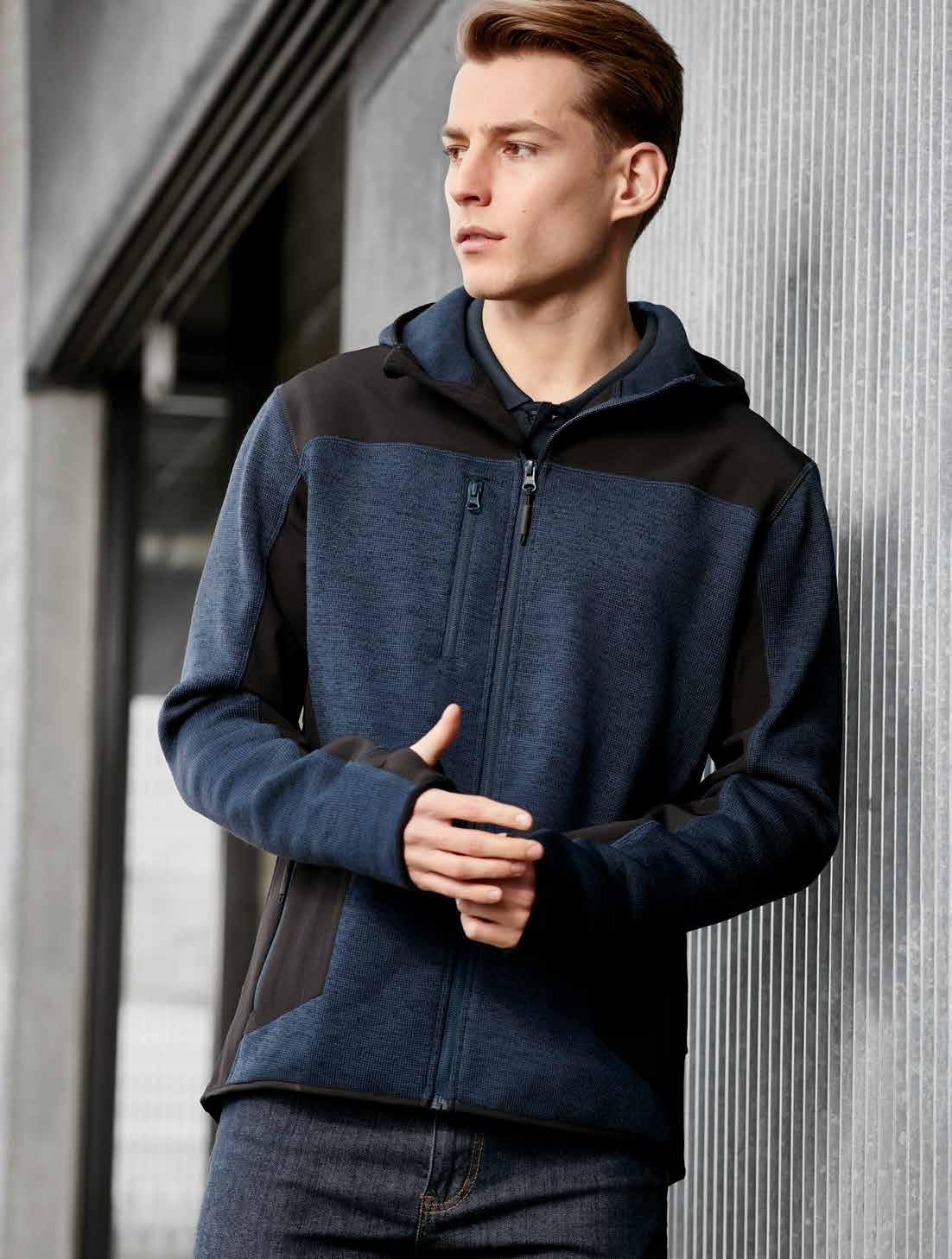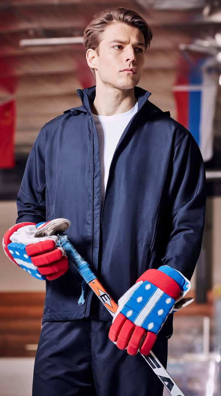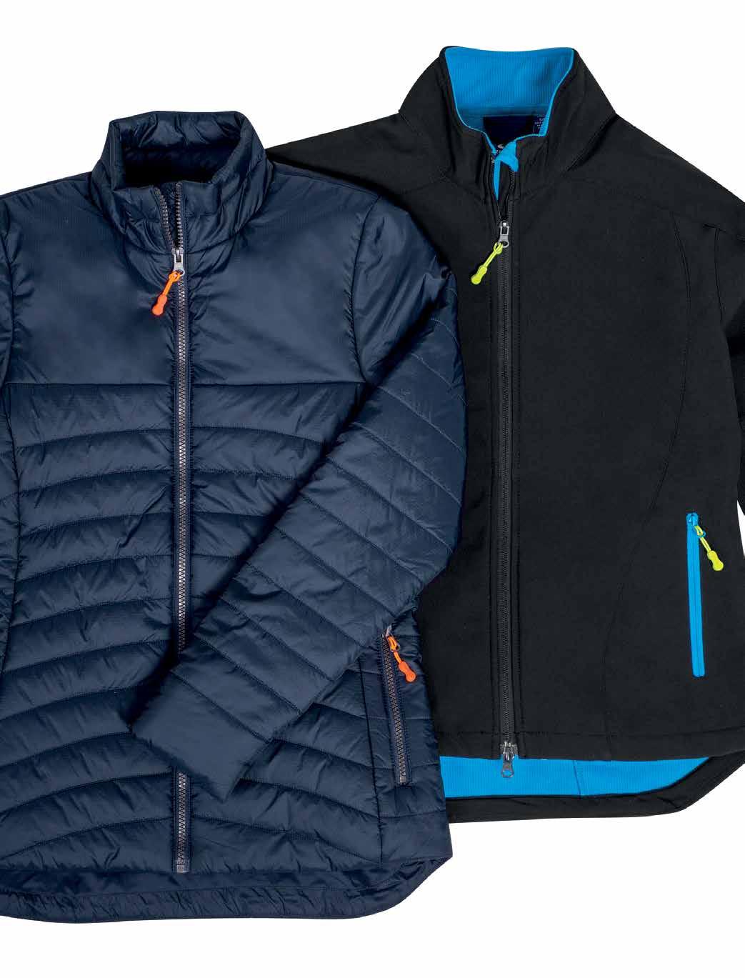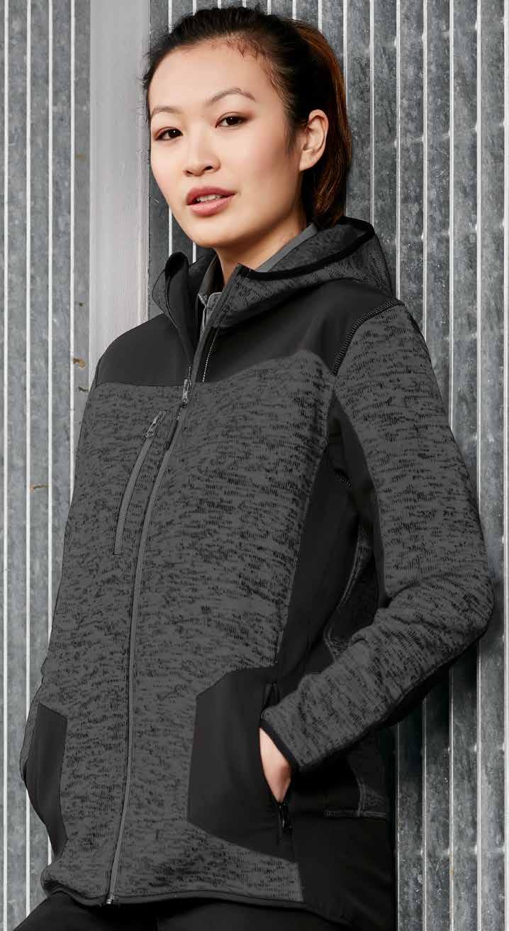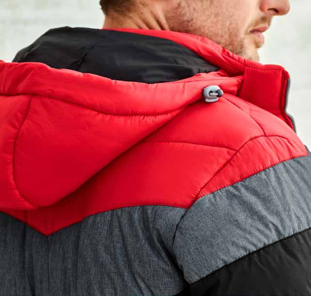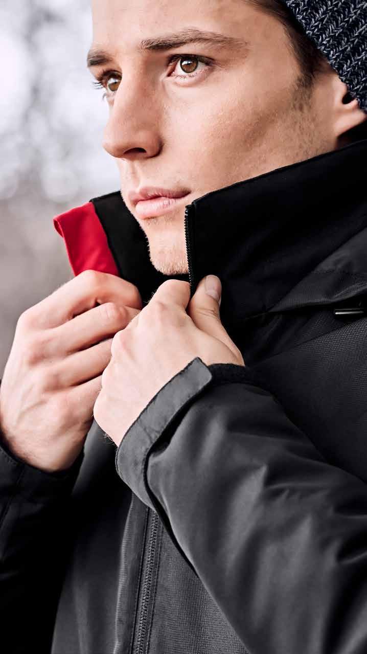 CARACTÉRISTIQUES Col tricoté assorti • Manches et panneaux de côté contrastants • Le style hommes inclut une poche détachée