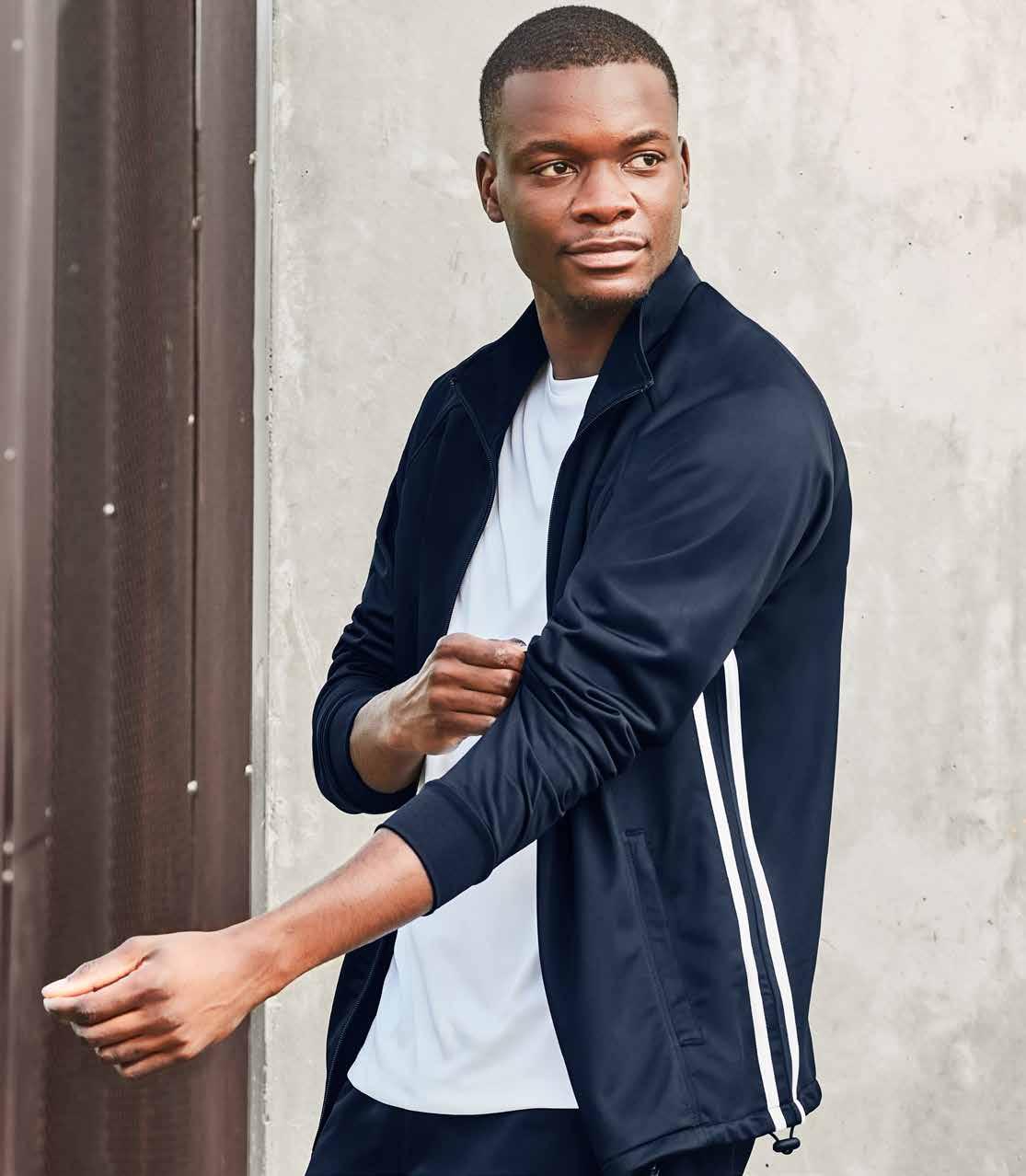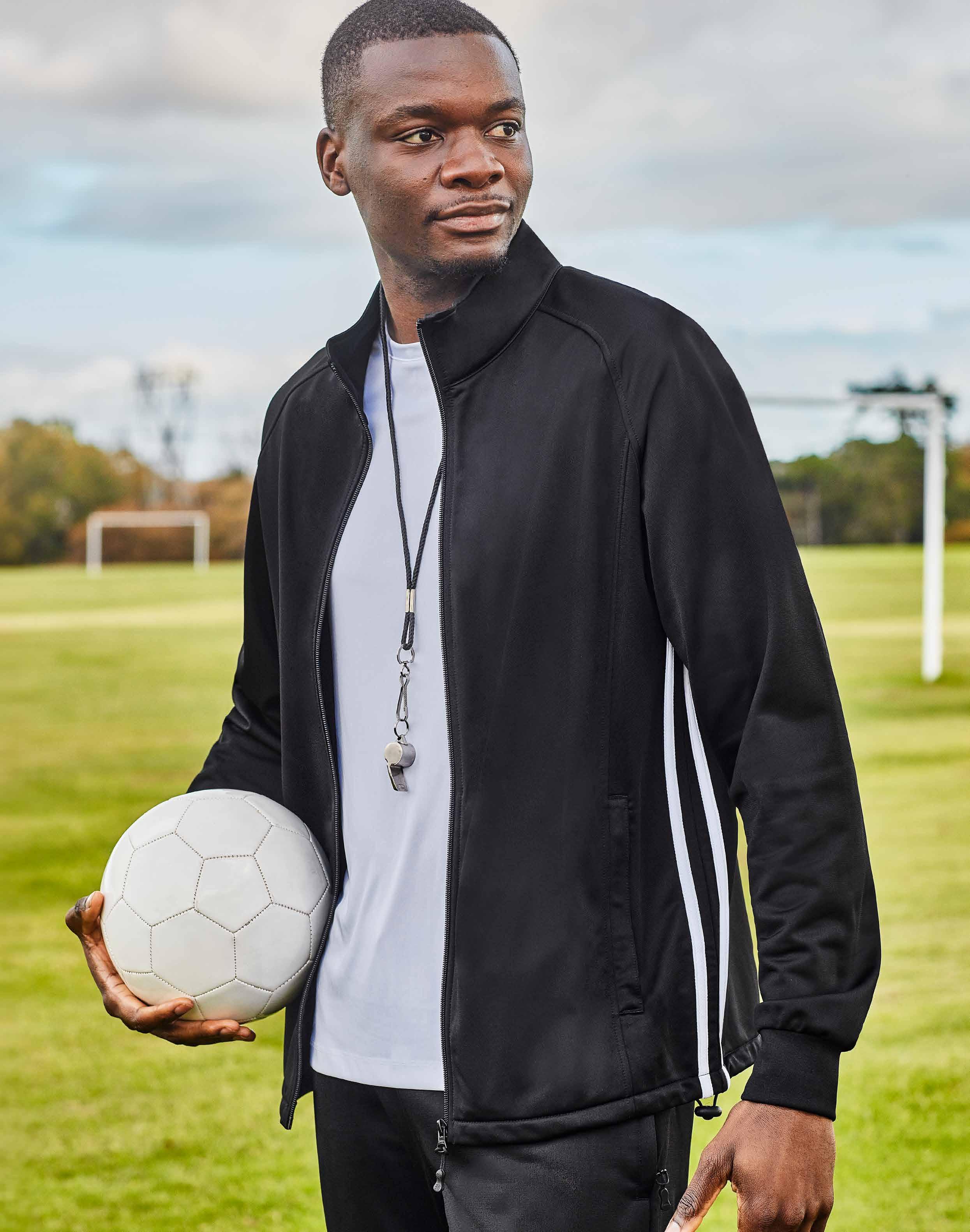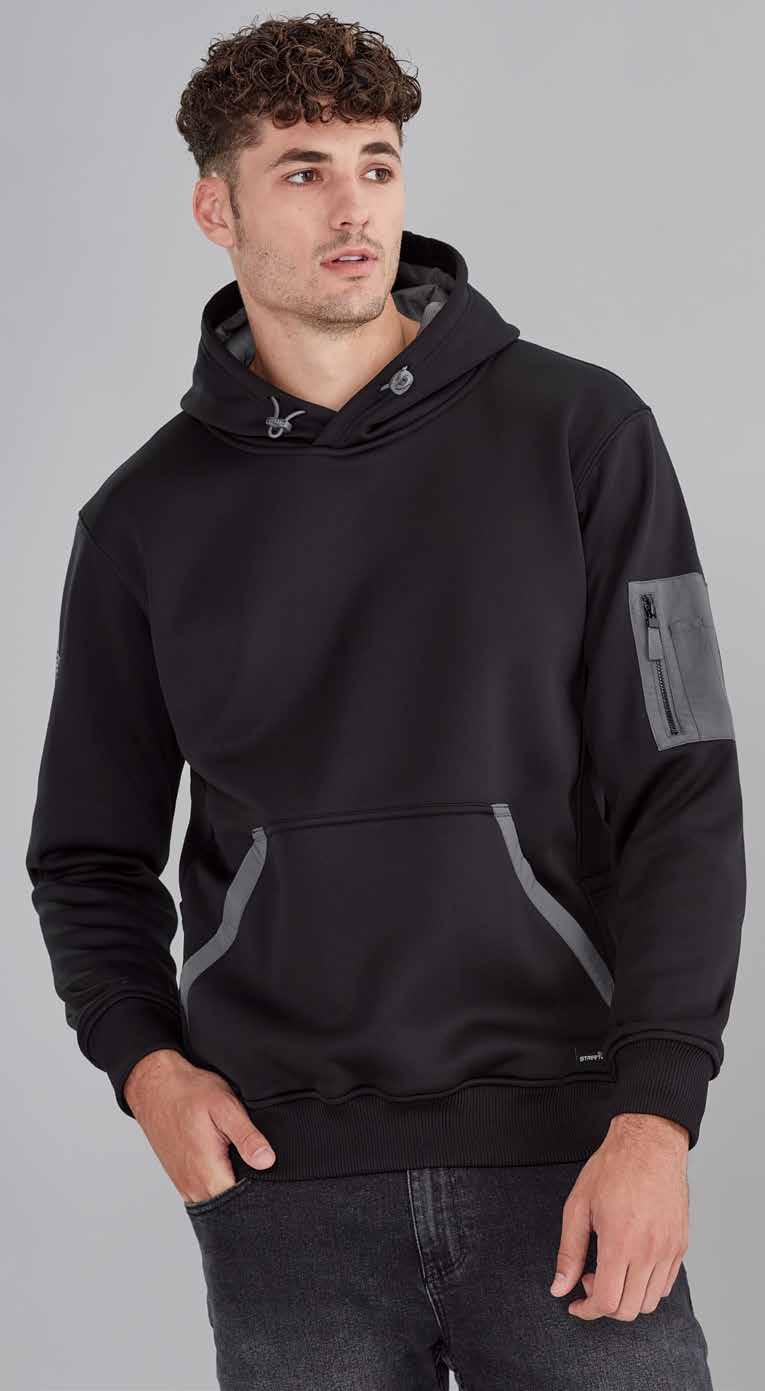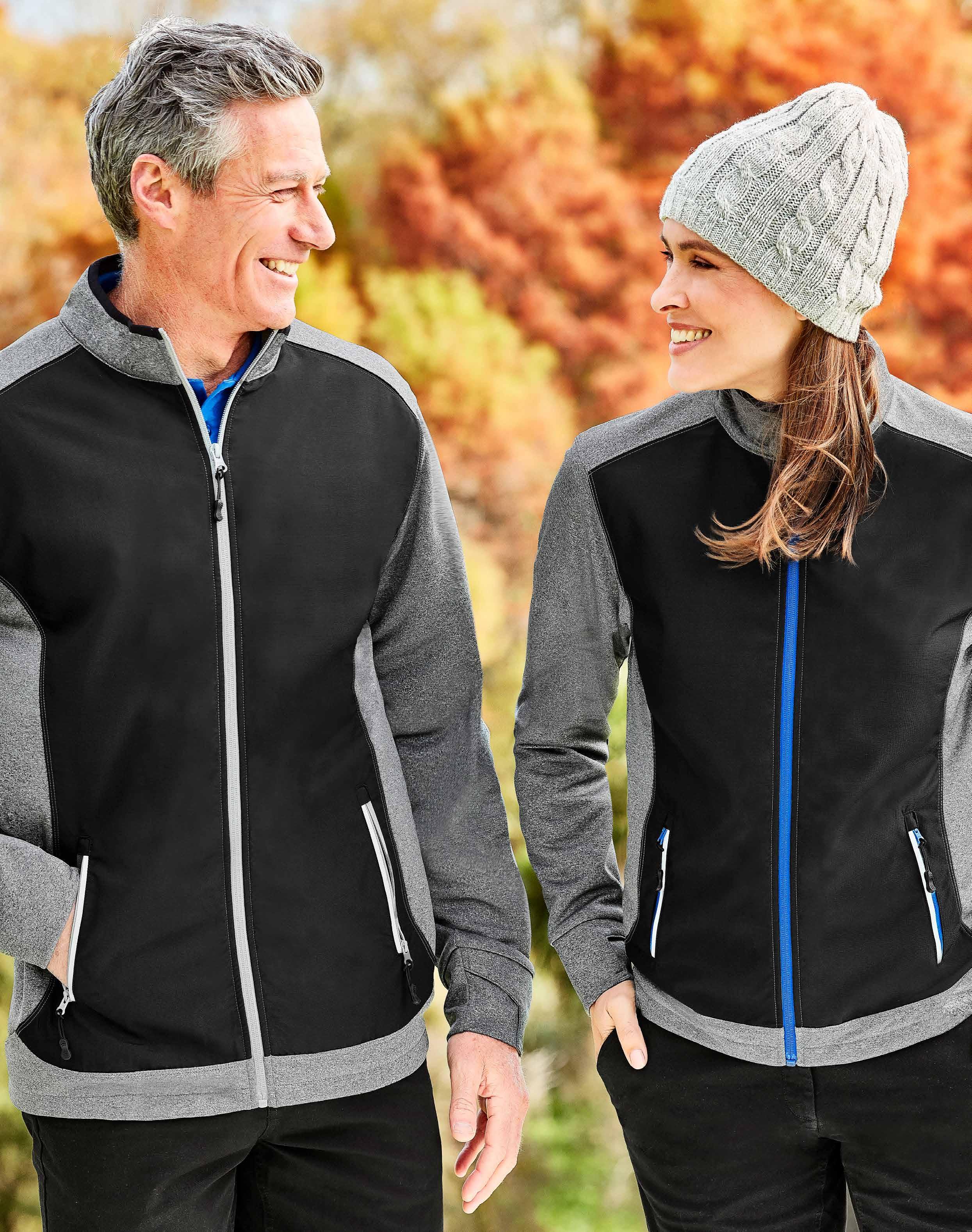CARACTÉRISTIQUES Col tricoté assorti • Manches et panneaux de côté contrastants • Le style hommes inclut une poche détachée