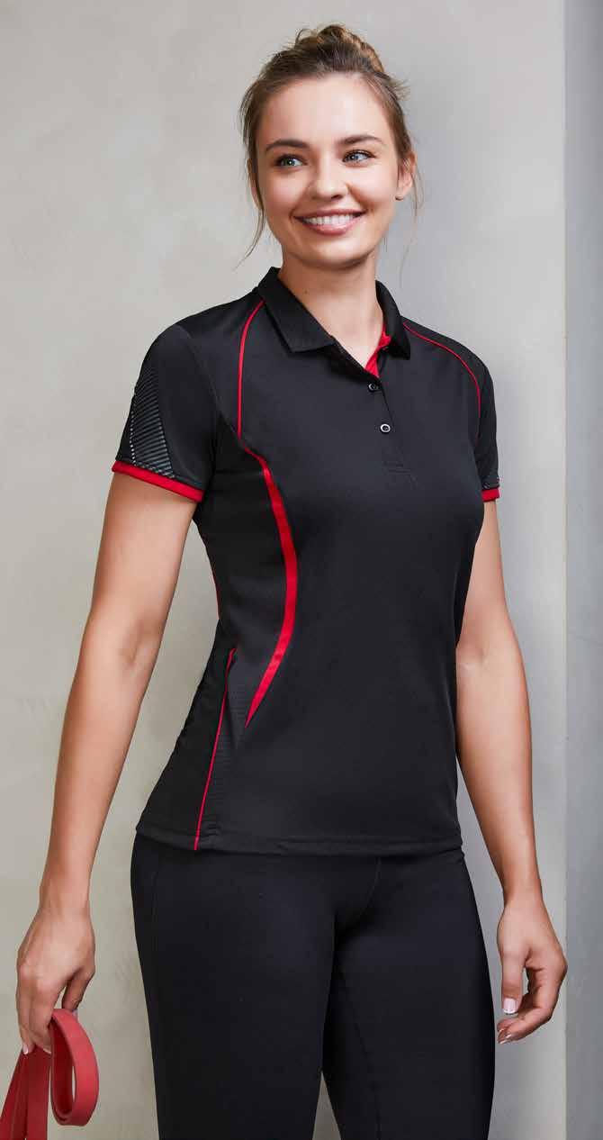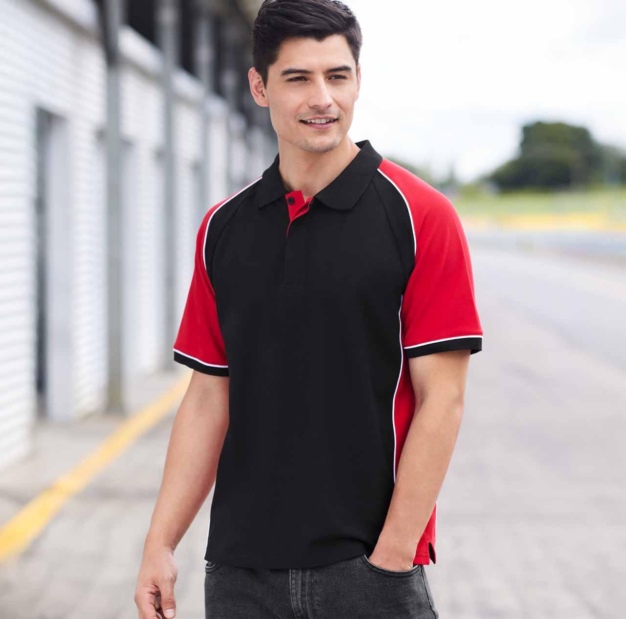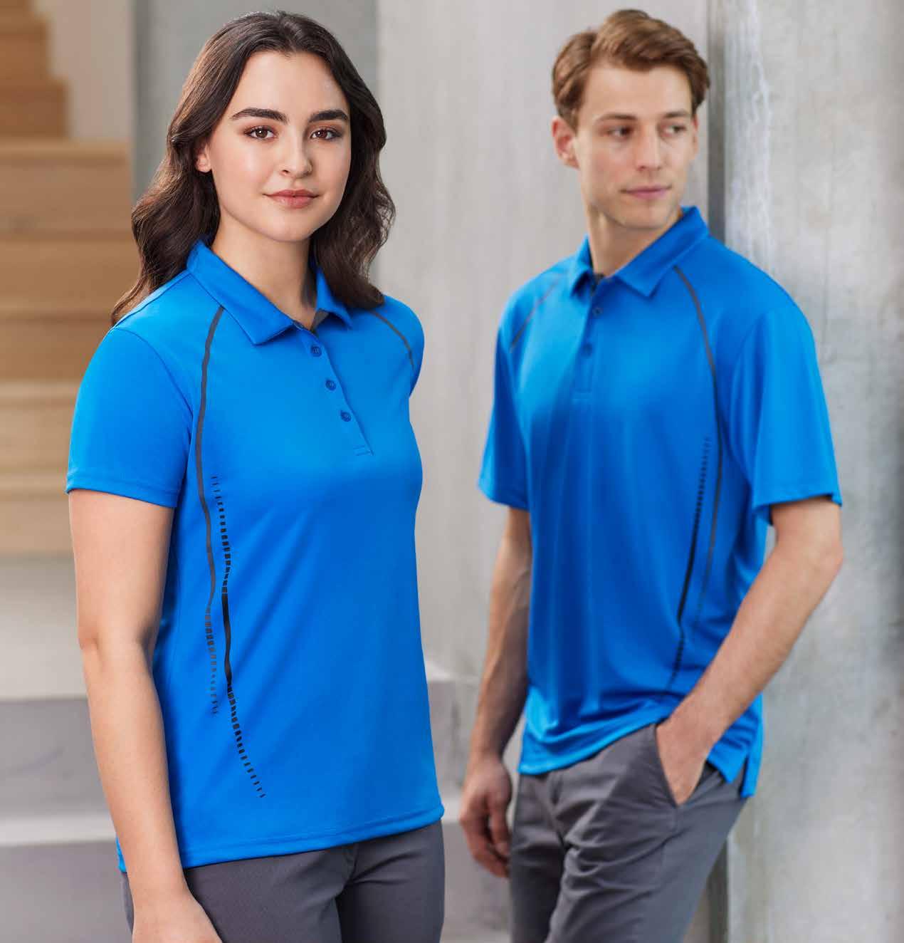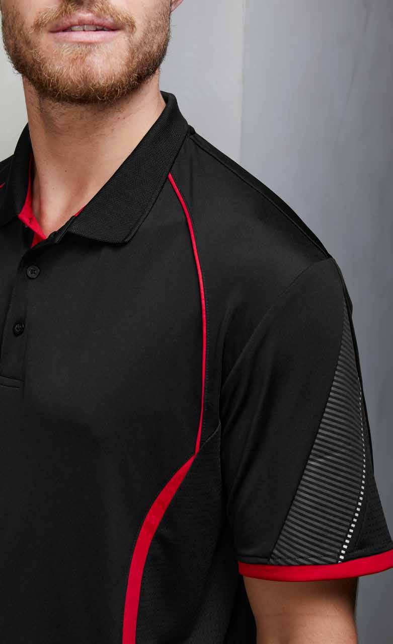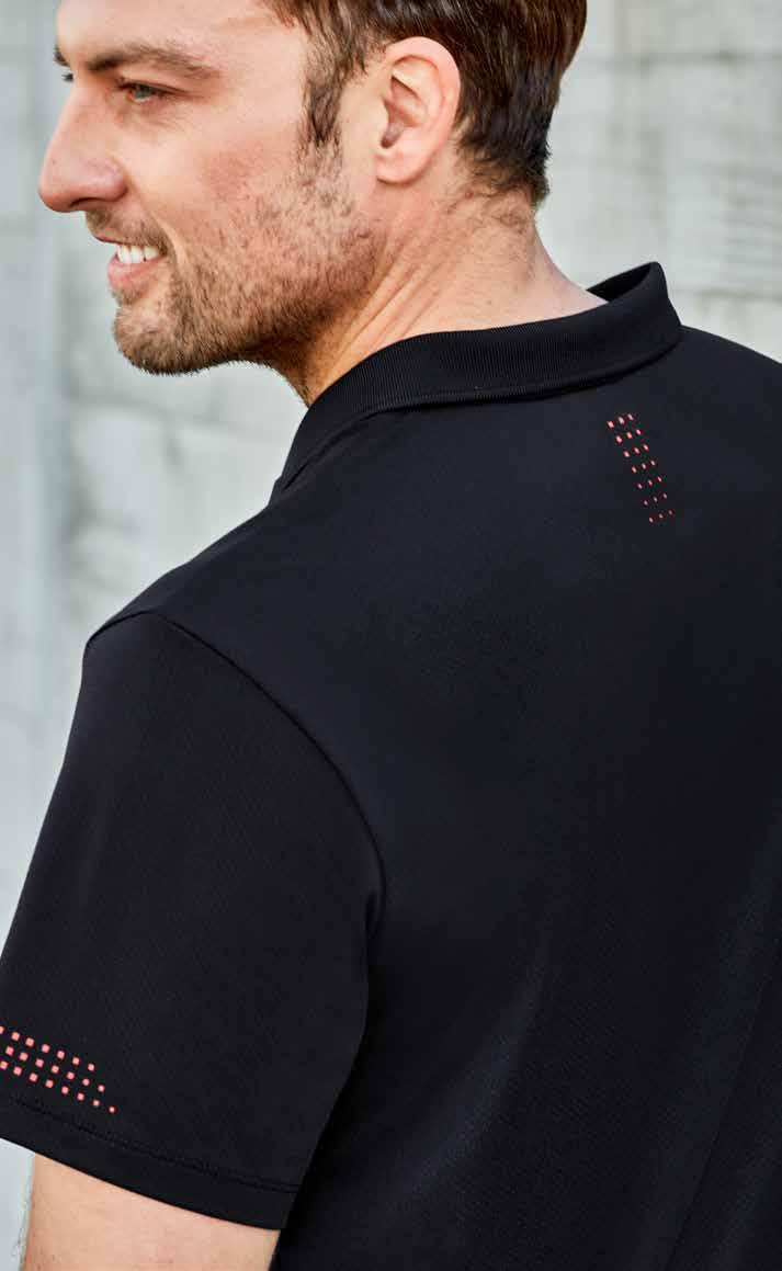 CARACTÉRISTIQUES Tissage en nid d’abeille avec élasthanne extensible offrant style et confort • Col en tricot plat avec patte de boutonnage contrastée • Panneaux latéraux avec passepoil à contraste dynamique • Caractéristiques d’impression uniques sur le torse, les manches et la nuque pour accentuer votre logo • Longueur allongée pour une couverture supplémentaire lors des mouvements