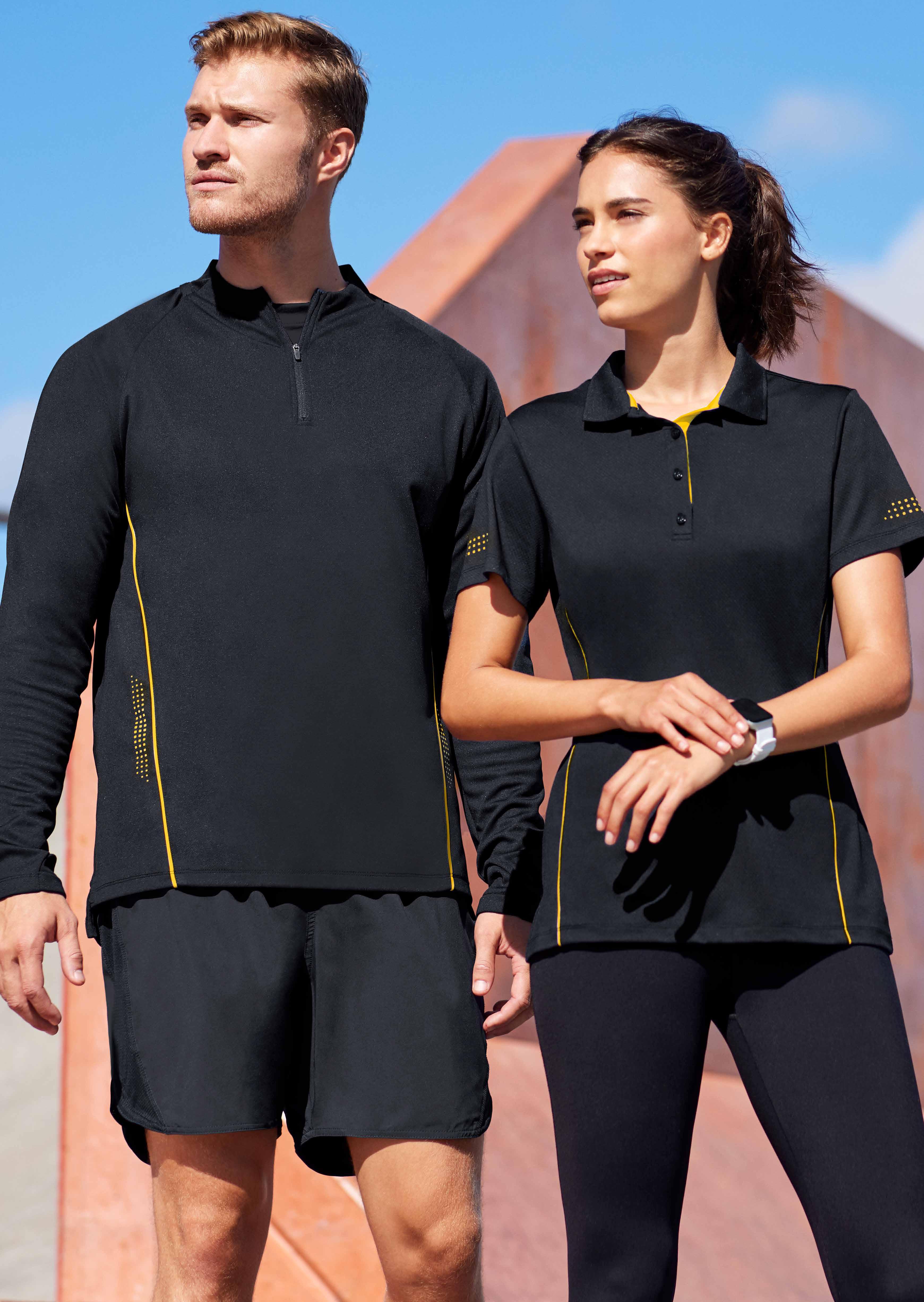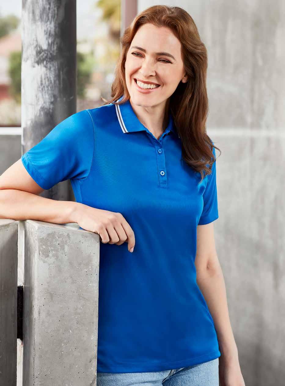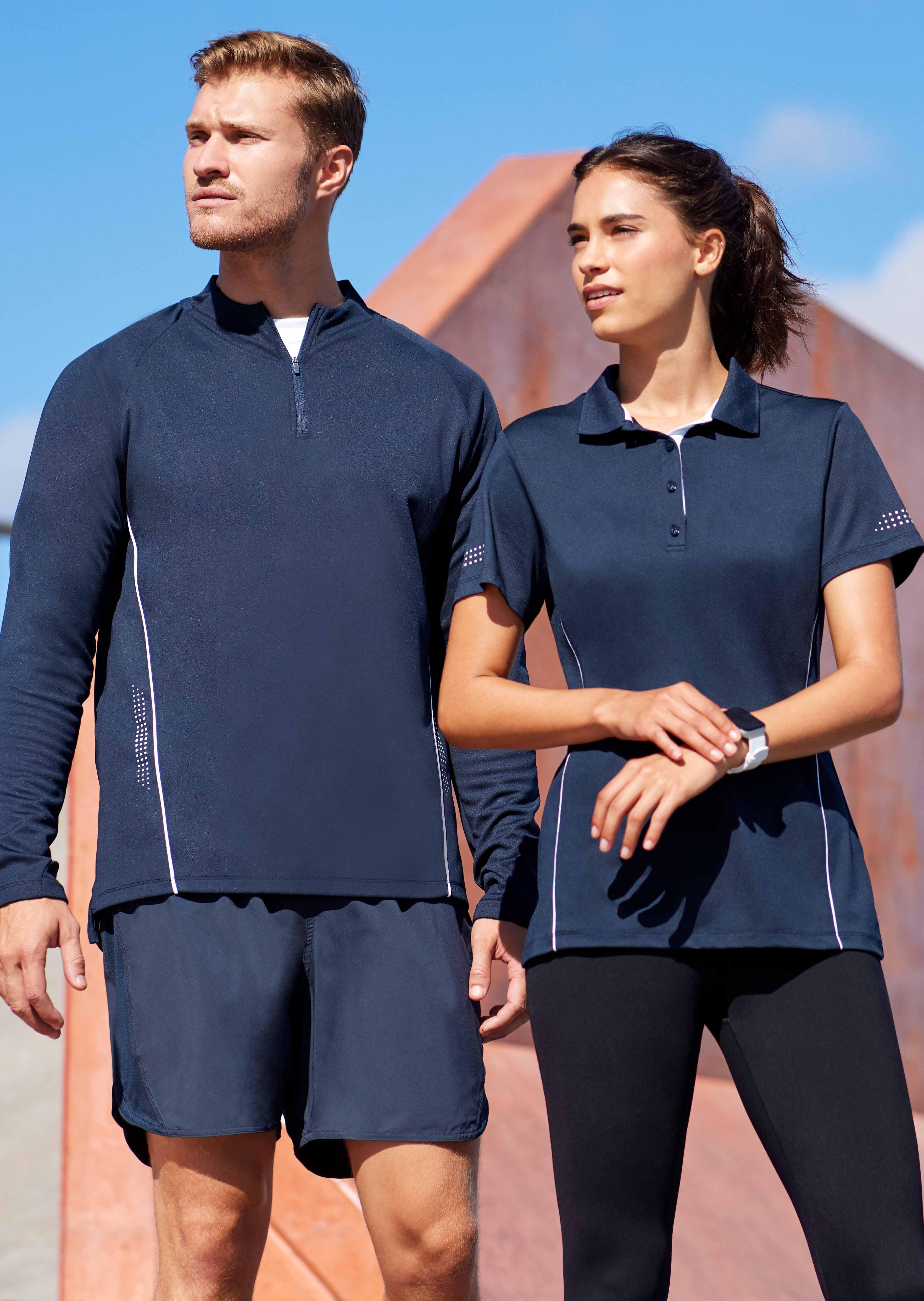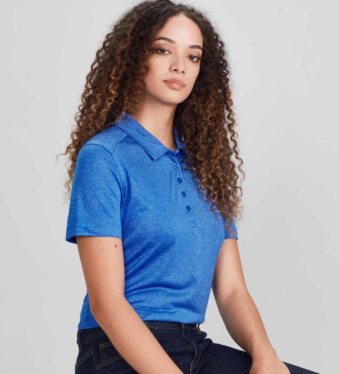 CARACTÉRISTIQUES Tissage en nid d’abeille avec élasthanne extensible offrant style et confort • Col en tricot plat avec patte de boutonnage contrastée • Panneaux latéraux avec passepoil à contraste dynamique • Caractéristiques d’impression uniques sur le torse, les manches et la nuque pour accentuer votre logo • Longueur allongée pour une couverture supplémentaire lors des mouvements