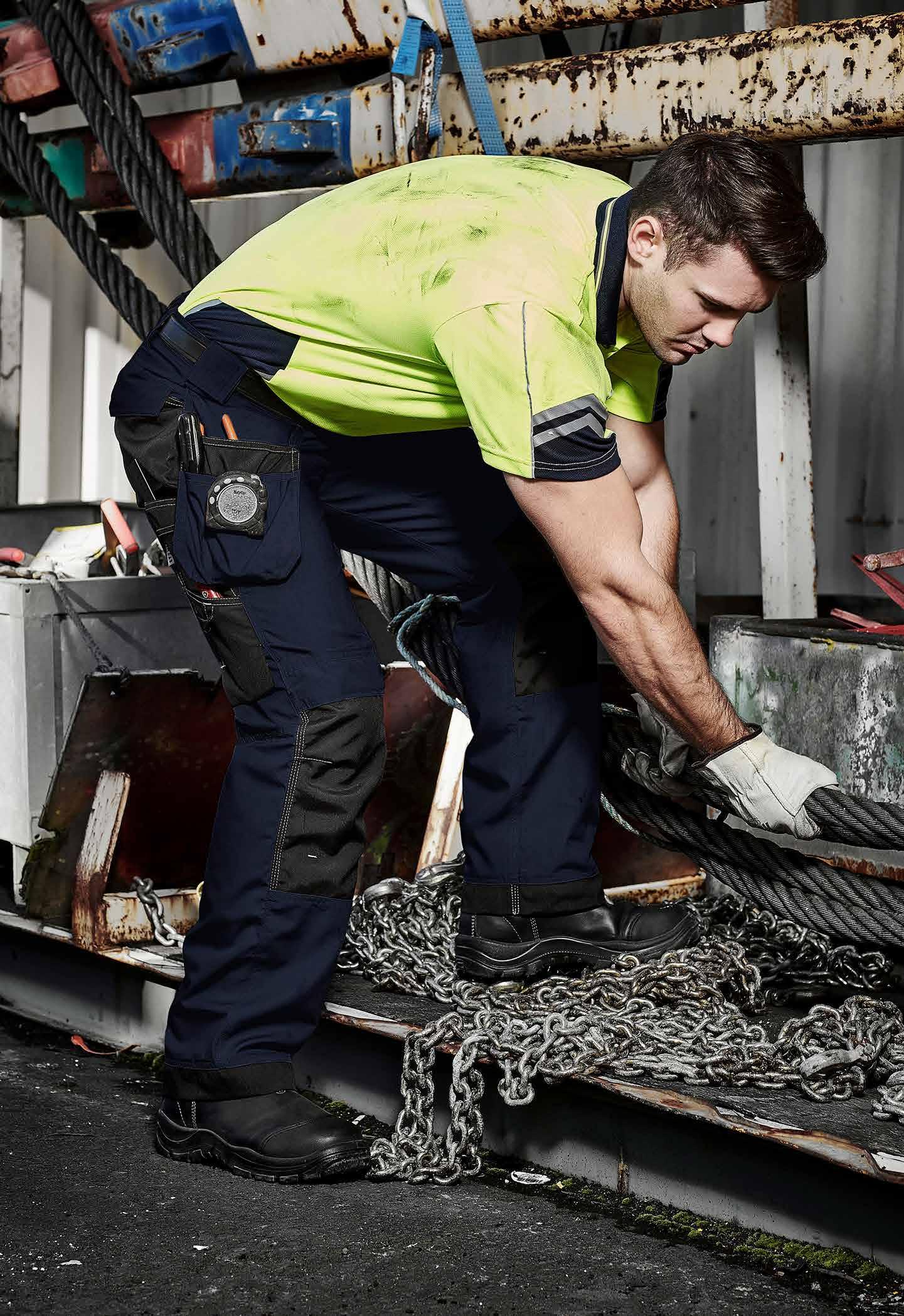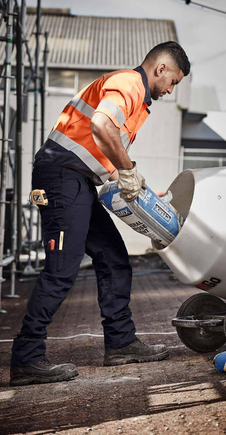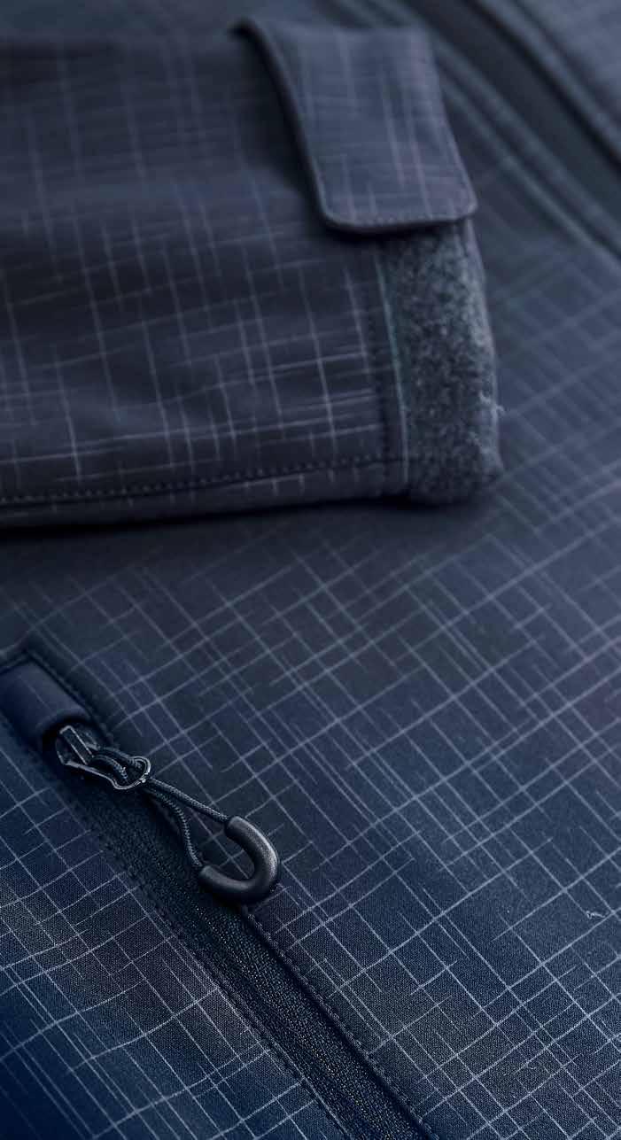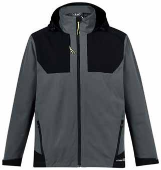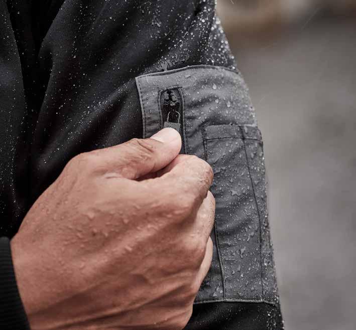 CARACTÉRISTIQUES Tissu imperméable léger évalué à 10 000 mm et coutures entièrement scellées • Tissu extensible dans 4 directions bougeant avec vous pendant que vous travaillez • Tissu respirant évalué à 4 500 g/m²/24 heures