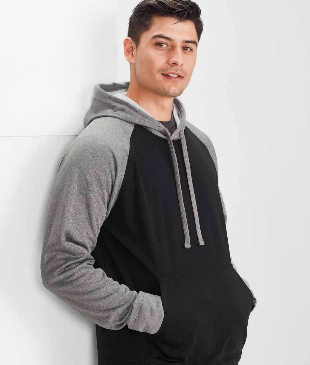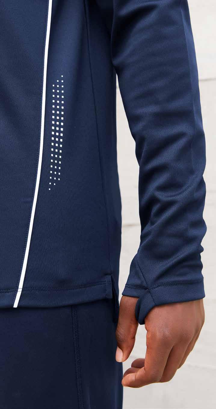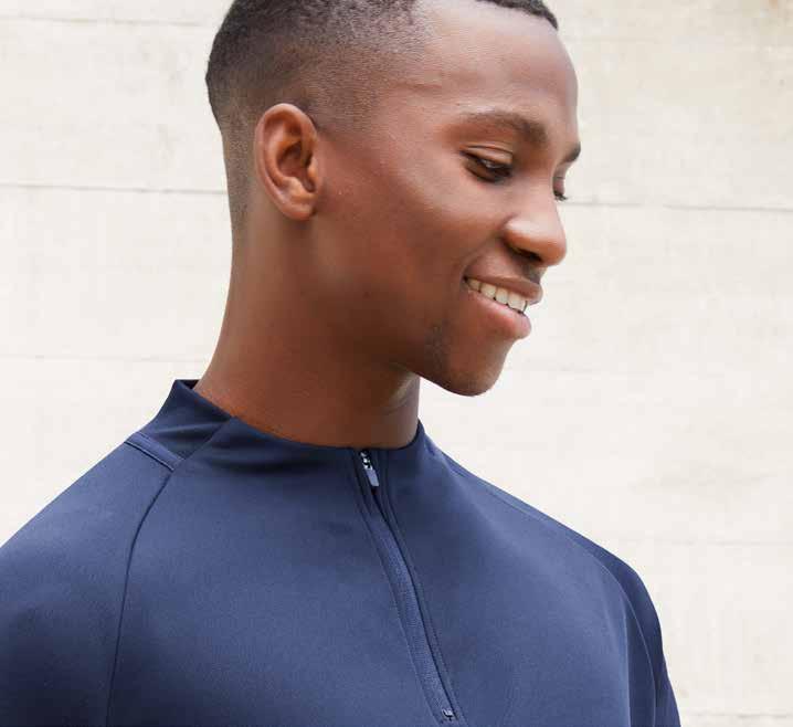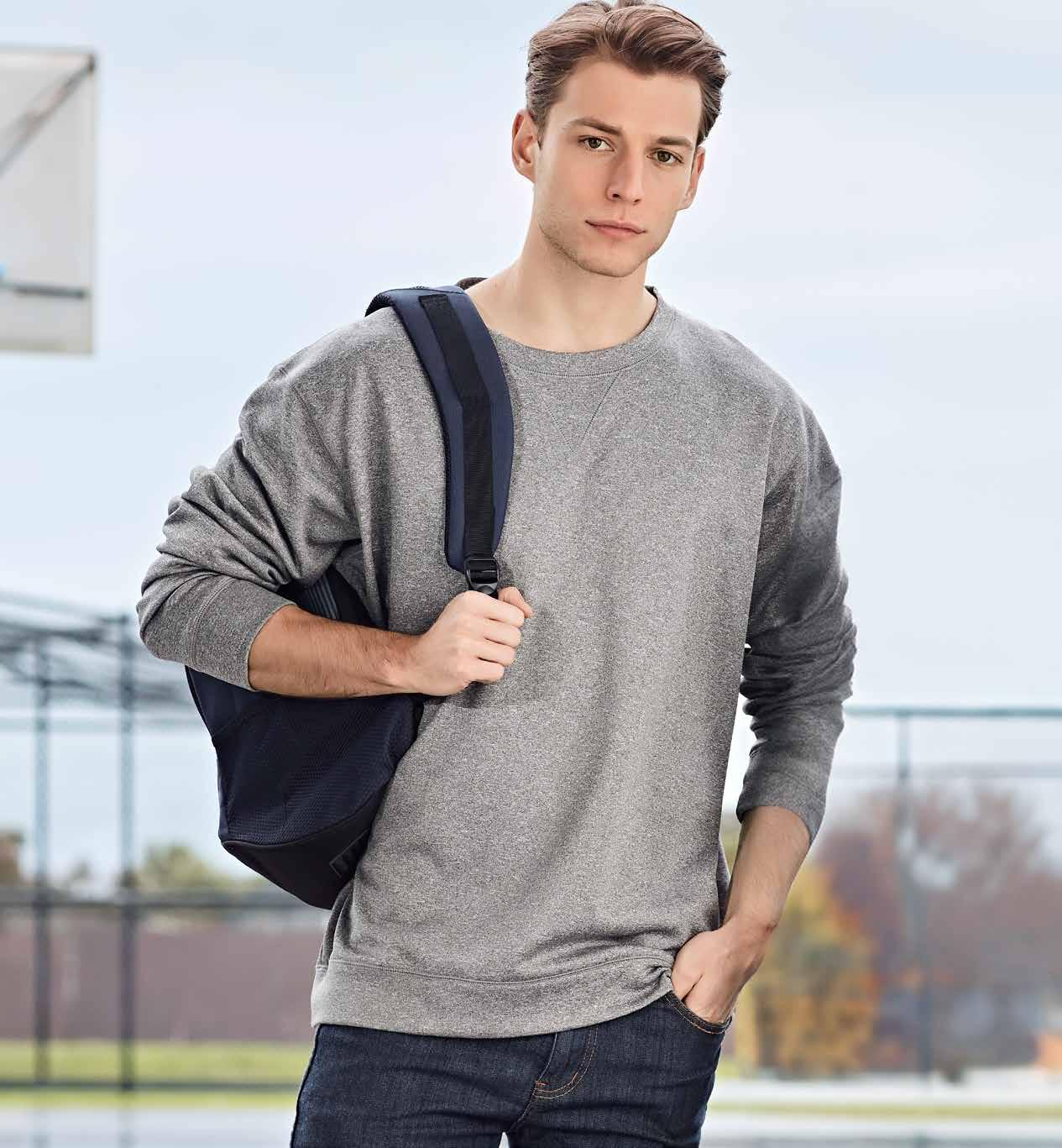 CARACTÉRISTIQUES Col tricoté assorti • Emmanchure en raglan flatlock durable