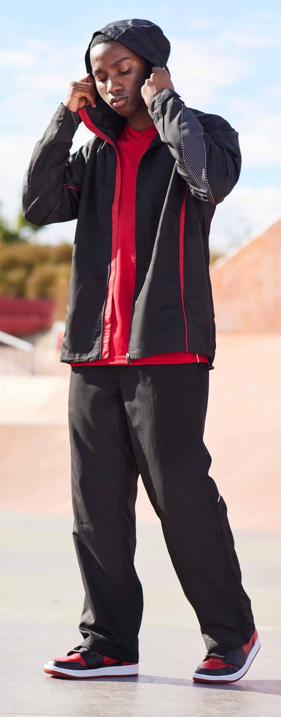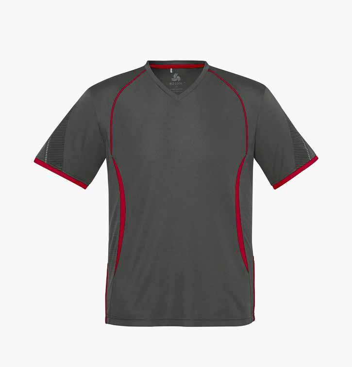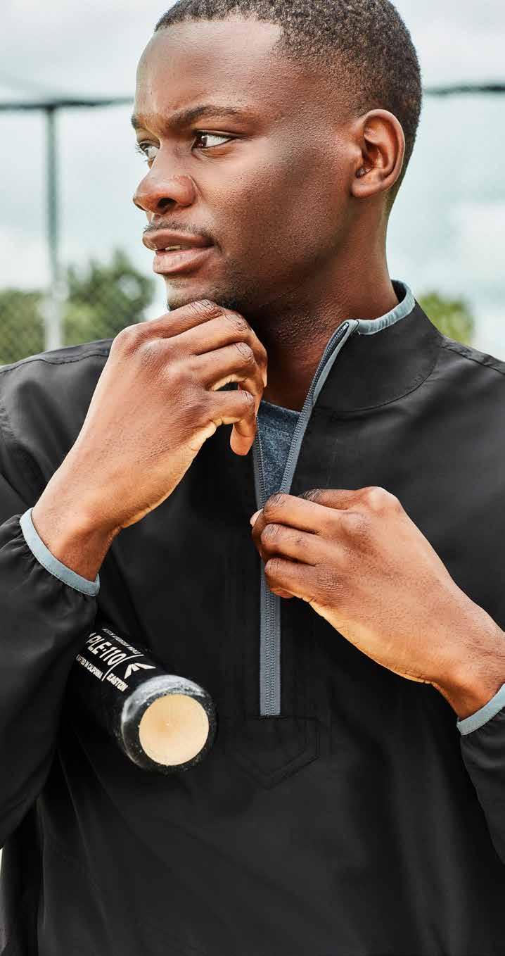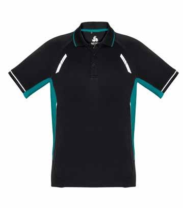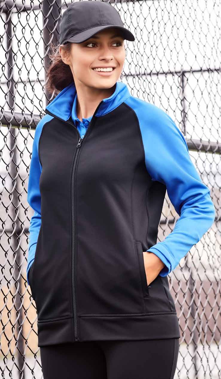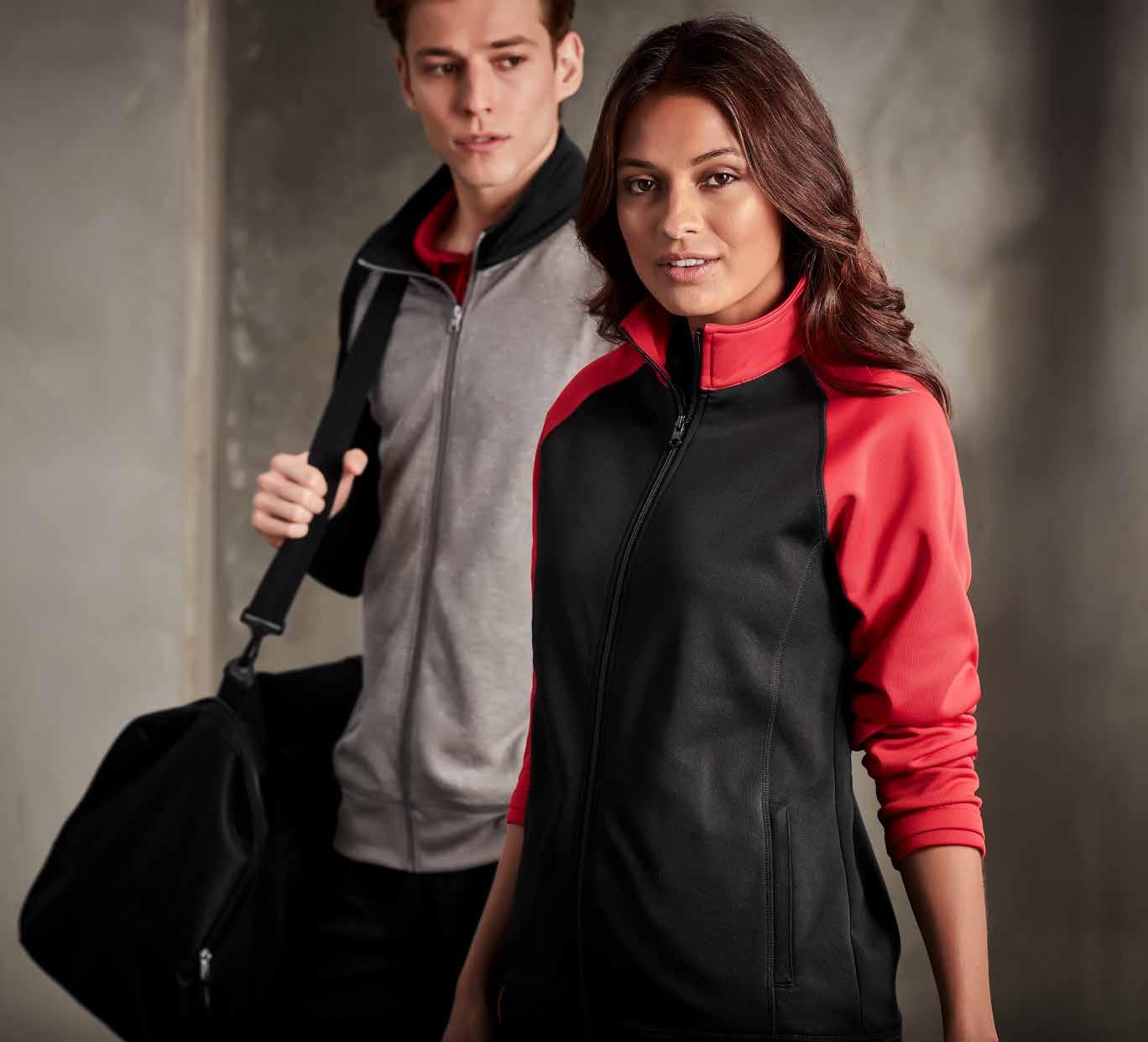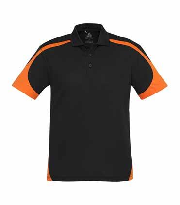 CARACTÉRISTIQUES Panneaux d’aisselles en maillage respirants • Imprimé de manche unique • Panneaux et passepoil contrastants • Col tricoté avec patte contrastante • Le style hommes comprend une poche détachée